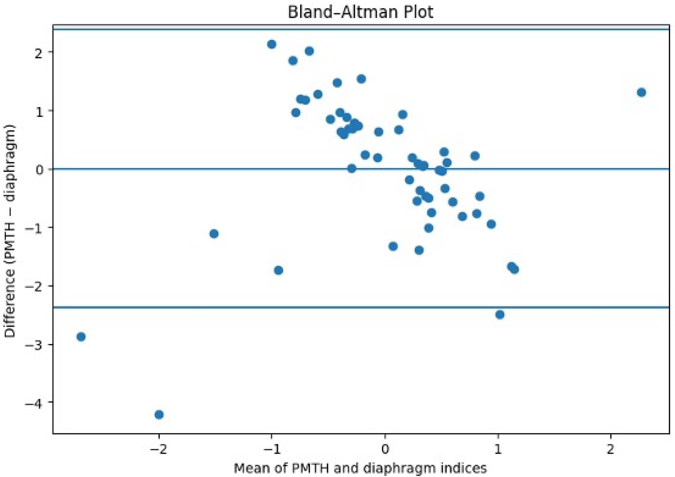 Figure 5). After normalization to allow comparison between indices expressed on different scales, the analysis showed minimal mean bias and a symmetrical distribution of differences across the range of measurements, with no relevant clustering or systematic deviation.