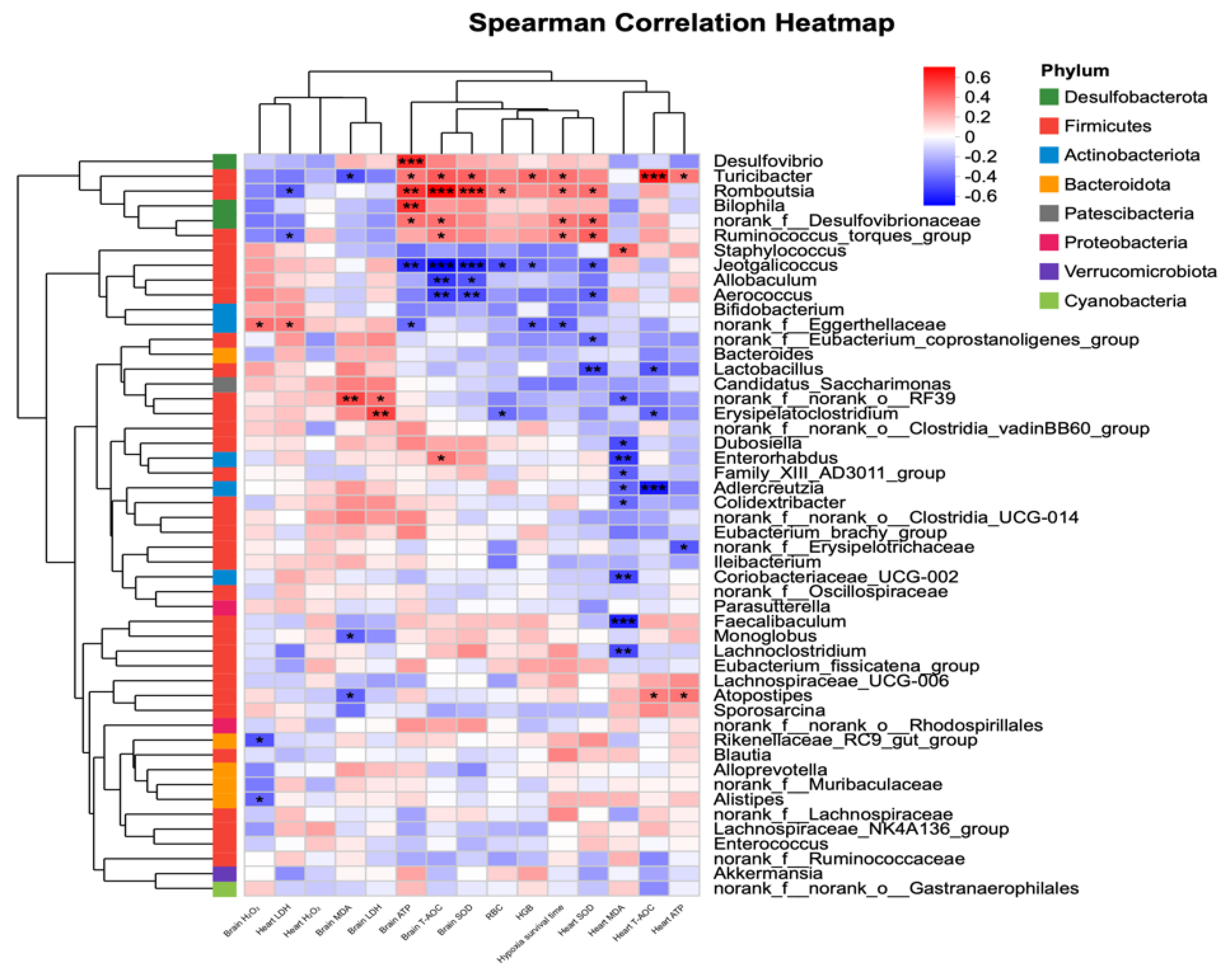 3.6. Associations Between Gut Microbiota and Hypoxia-Related Physiological Parameters