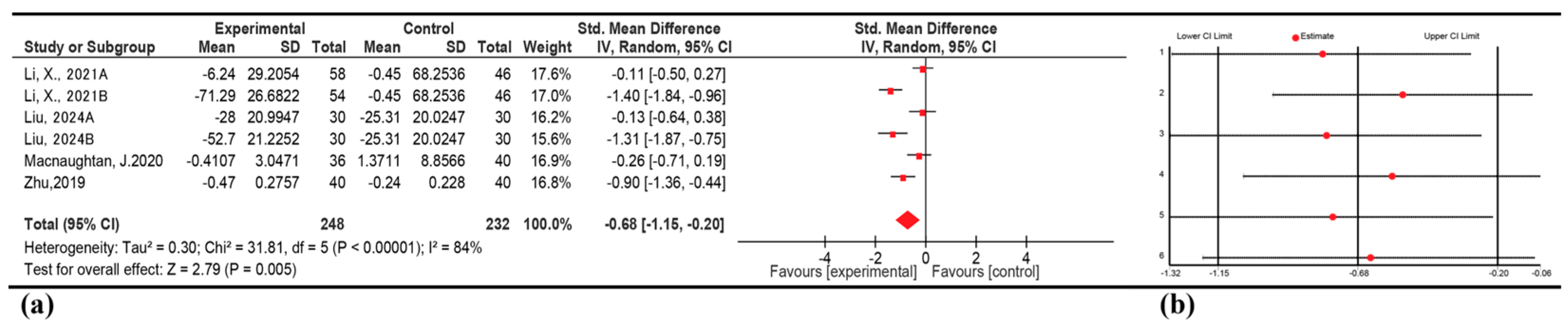 - Ke, Y.; Enxuan, L.; Wangli, X.; Liping, Z.; Tiejun, T. An alternative measure for quantifying the heterogeneity in meta-analysis. Stat. Med. 2025, 44, e70089. [Google Scholar]