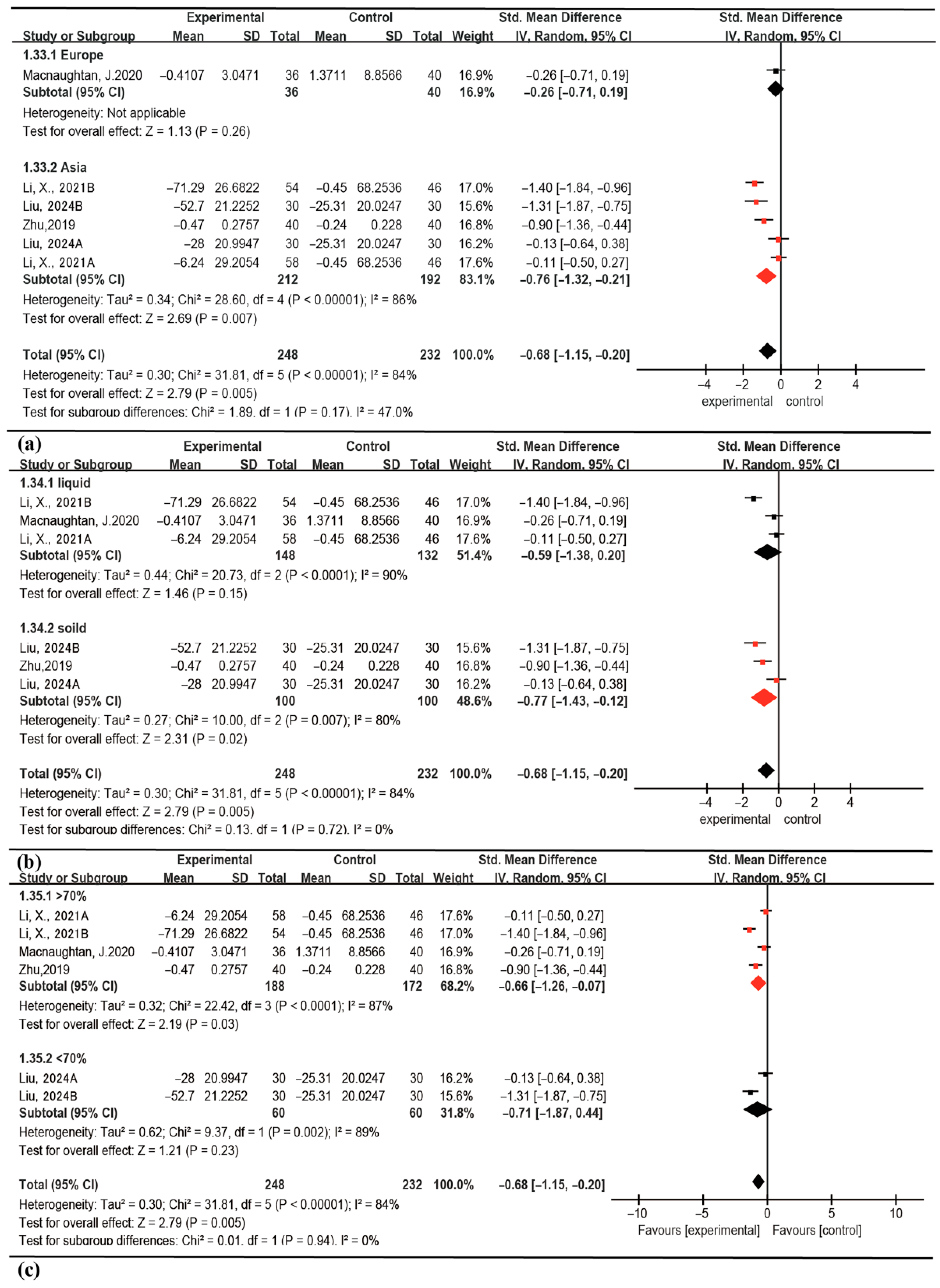| Han, S. H. et al. (2015) [29] | South Korea | 60/57 | 52.7 ± 11.3 | Lactobacillus subtilis. Streptococcus faecium | Placebo | 1 | TNF-α, IL-1β | AH | 64% | Solid Dosage Forms | 1200 mg/g |