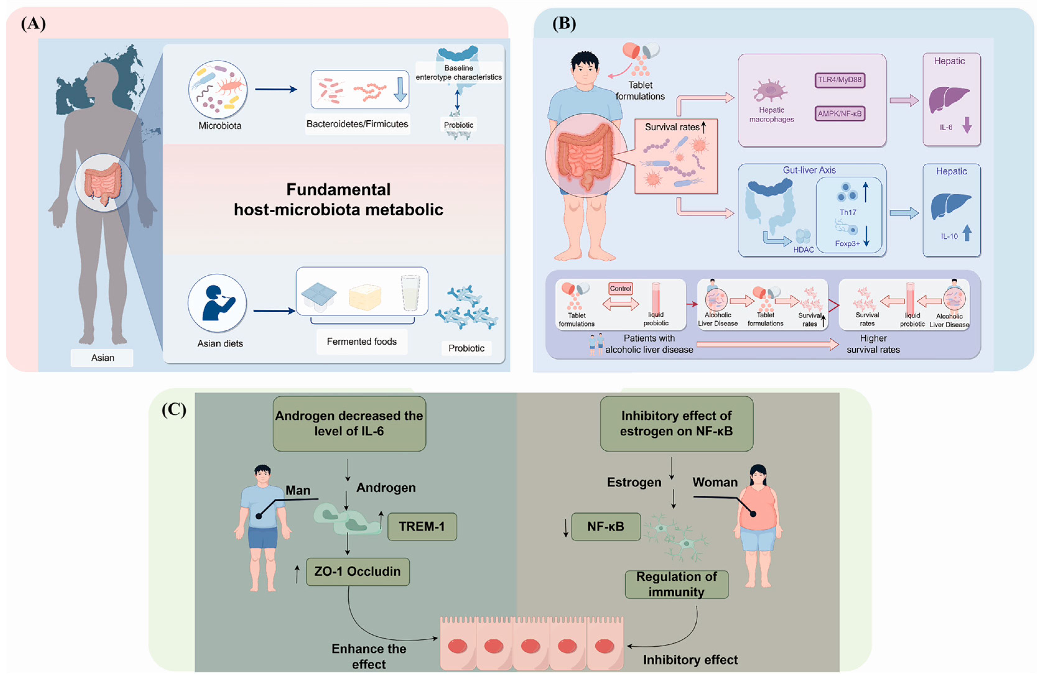 - Lamas-Paz, A.; Mesquita, M.; Garcia-Lacarte, M.; Estévez-Vázquez, O.; Benedé-Ubieto, R.; Gutierrez, A.H.; Wu, H.; Leal Lasalle, H.; Vaquero, J.; Bañares, R.; et al. Fecal microbiota transplantation from female donors restores gut permeability and reduces liver injury and inflammation in middle-aged male mice exposed to alcohol. Front. Nutr. 2024, 11, 1393014. [Google Scholar] [CrossRef]
