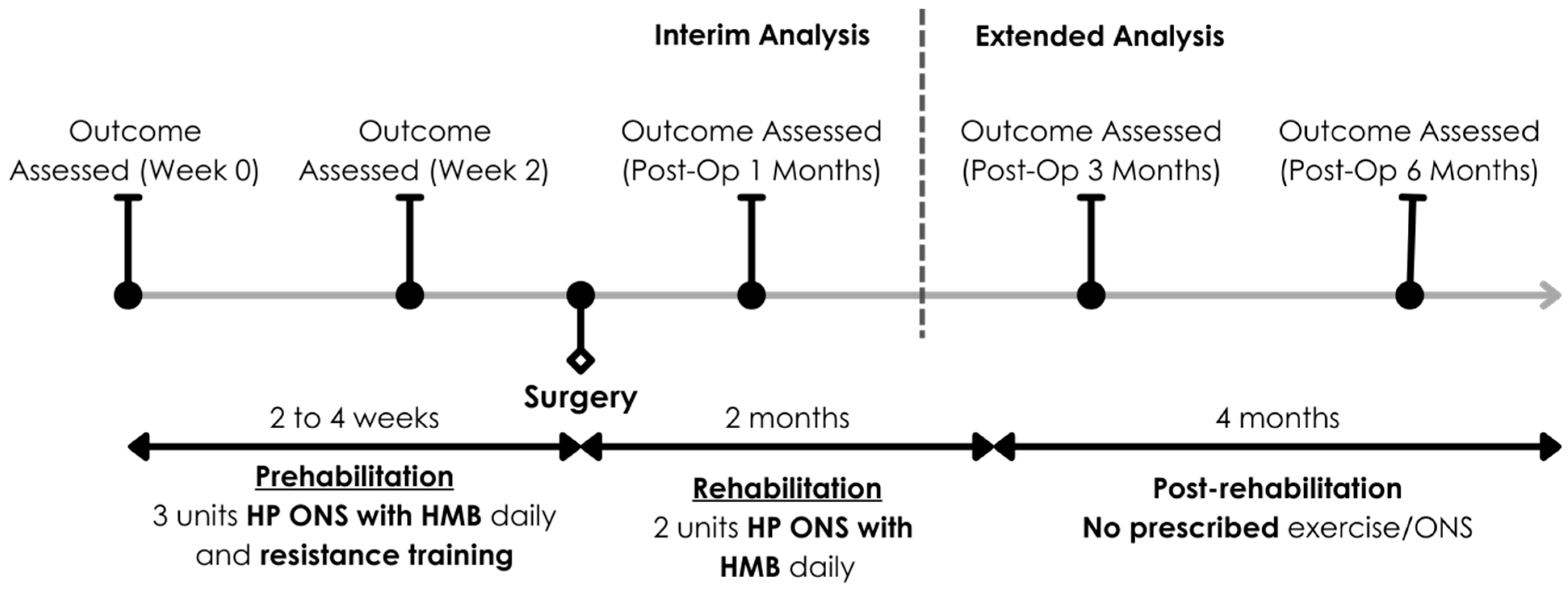 - Koh, F.H.-X.; Yik, V.; Chin, S.-E.; Kok, S.S.-X.; Lee, H.-B.; Tong, C.; Tay, P.; Chean, E.; Lam, Y.-E.; Mah, S.-M.; et al. Evaluating the Impact of Multimodal Prehabilitation with High Protein Oral Nutritional Supplementation (HP ONS) with Beta-Hydroxy Beta-Methylbutyrate (HMB) on Sarcopenic Surgical Patients—Interim Analysis of the HEROS Study. Nutrients 2024, 16, 4351. [Google Scholar] [CrossRef] [PubMed]