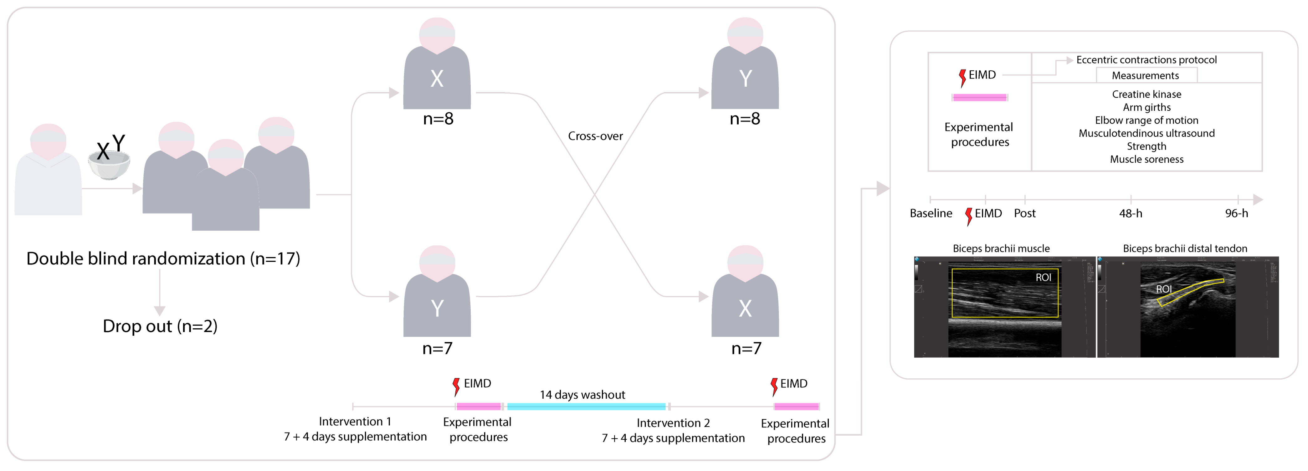 - Zhang, X.; Zhong, Y.; Rajabi, S. Polyphenols and Post-Exercise Muscle Damage: A Comprehensive Review of Literature. Eur. J. Med. Res. 2025, 30, 260. [Google Scholar] [CrossRef] [PubMed]