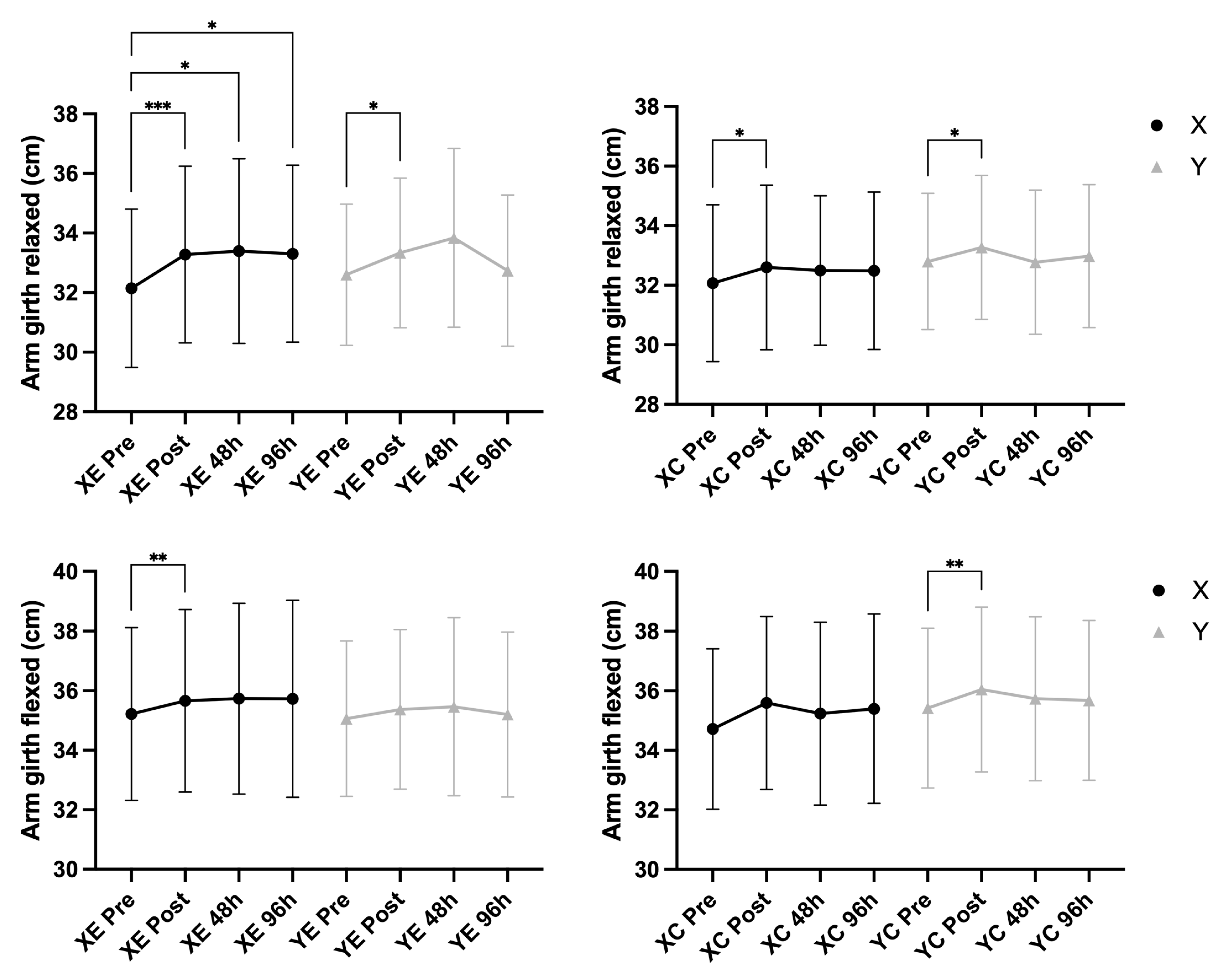 - Yasuda, T.; Fukumura, K.; Iida, H.; Nakajima, T. Effect of Low-Load Resistance Exercise with and without Blood Flow Restriction to Volitional Fatigue on Muscle Swelling. Eur. J. Appl. Physiol. 2015, 115, 919–926. [Google Scholar] [CrossRef]