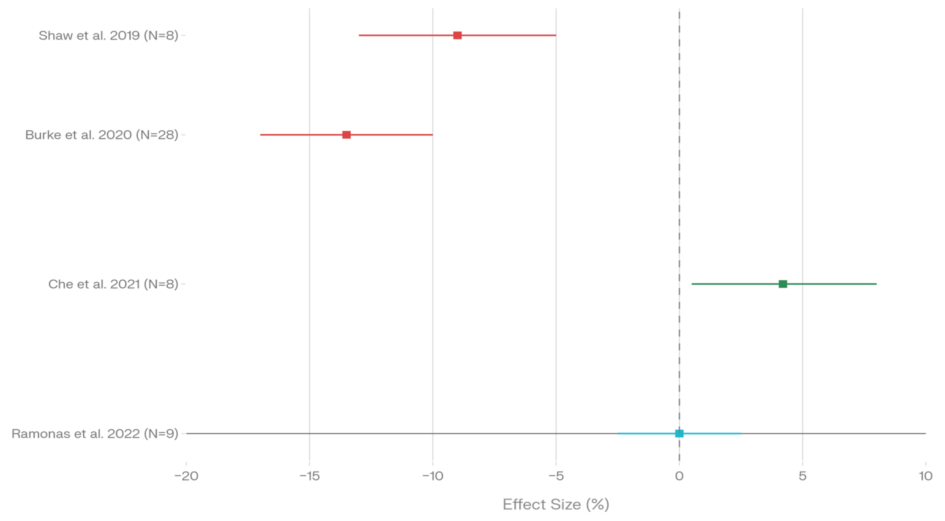 The minimal evidence of publication bias (Egger’s regression coefficient = 0.54, 95% CI: −0.18 to 1.26, p = 0.128 approaching but not reaching significance; Begg’s rank correlation tau = 0.08, p = 0.052 indicating modest asymmetry; trim-and-fill analysis identifying only two potentially missing studies with minimal effect on conclusions) suggests that findings are not substantially distorted by selective publication of positive results. The universal concordance of all 30 studies measuring fat oxidation showing increased rates (100% directional concordance, 18 studies p < 0.001, 4 studies p < 0.01, 3 studies p < 0.05, 5 studies not reporting explicit p-value) represents particularly strong evidence against selective reporting bias for this outcome, as this outcome shows no variability that selective publication could suppress.