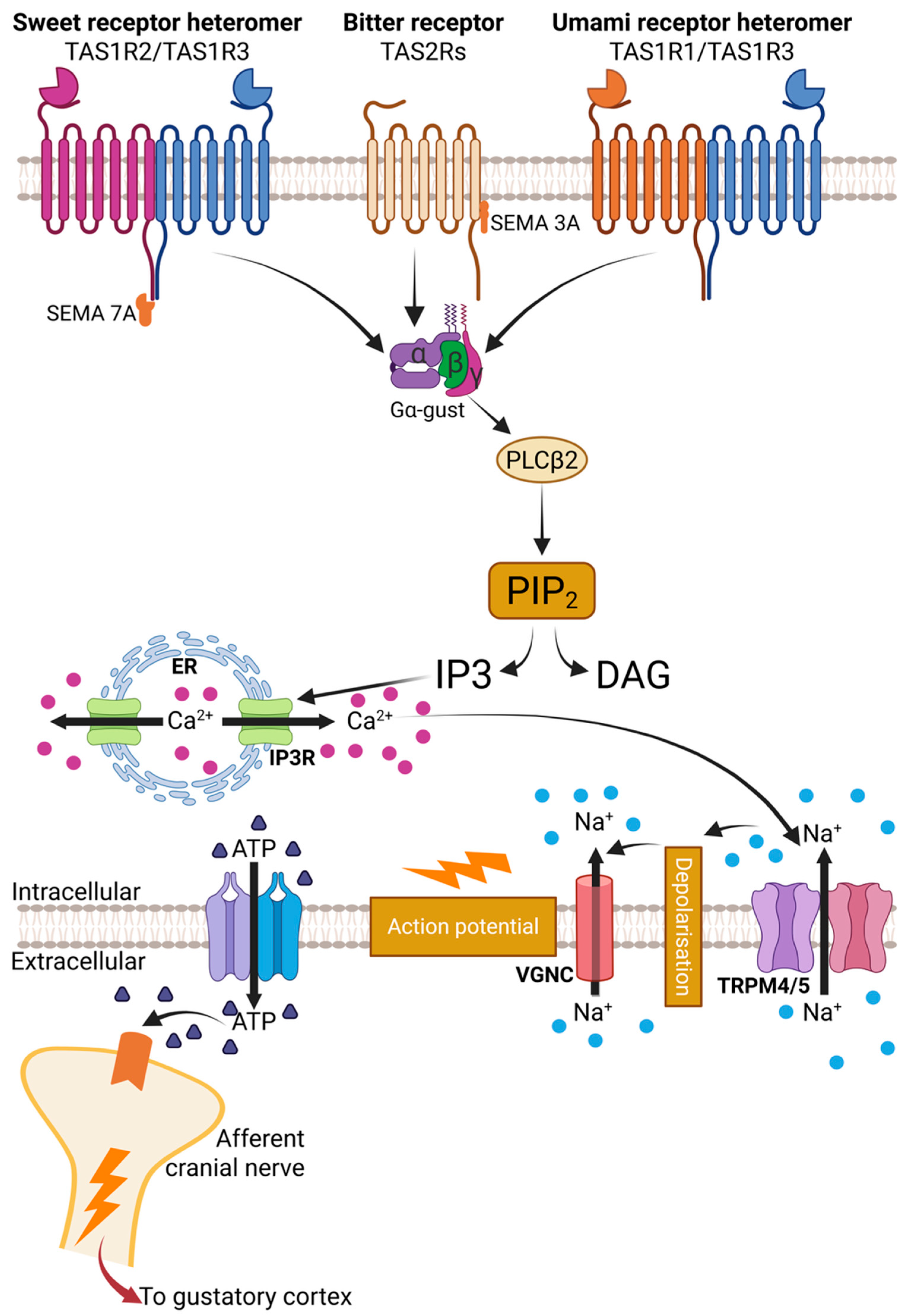 - Ahmad, R.; Dalziel, J.E. G Protein-Coupled Receptors in Taste Physiology and Pharmacology. Front. Pharmacol. 2020, 11, 587664. [Google Scholar] [CrossRef]