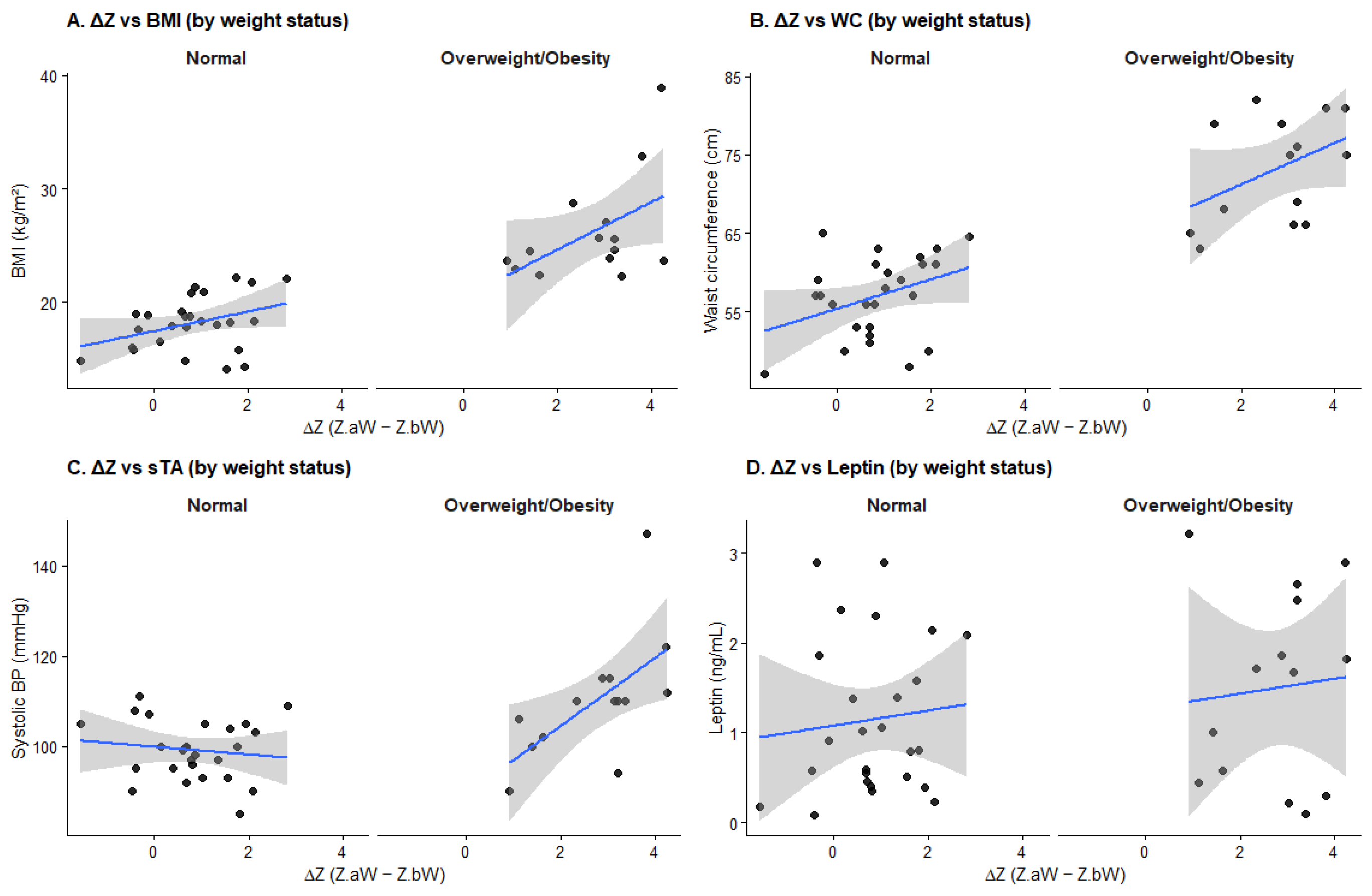 | WHtR | Slope of ΔZ (Normal) | −0.002 | 0.008 | 0.844 |