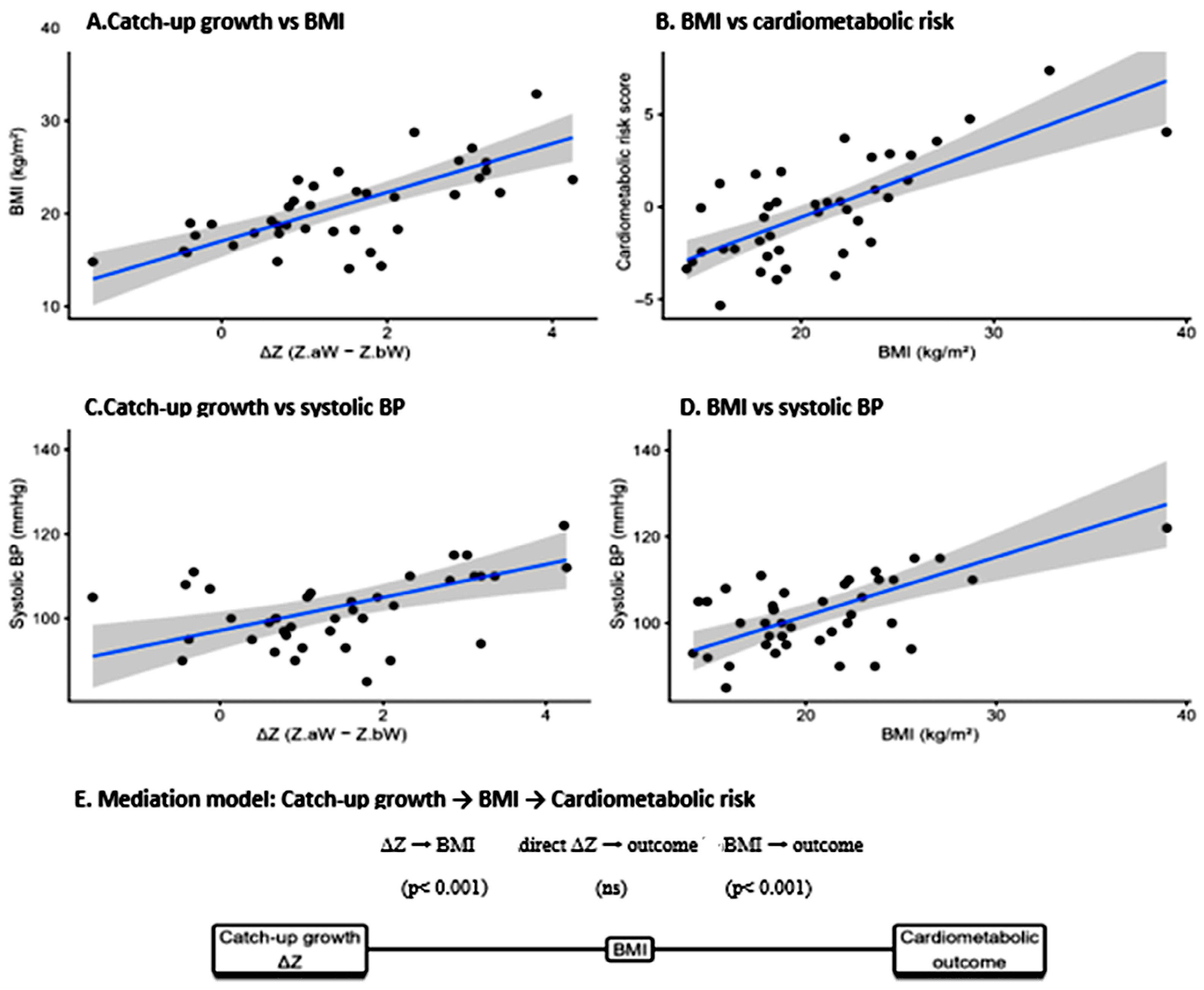 3.7. Mediation Analysis of the Relationship Between Catch-Up Growth and Cardiometabolic Risk