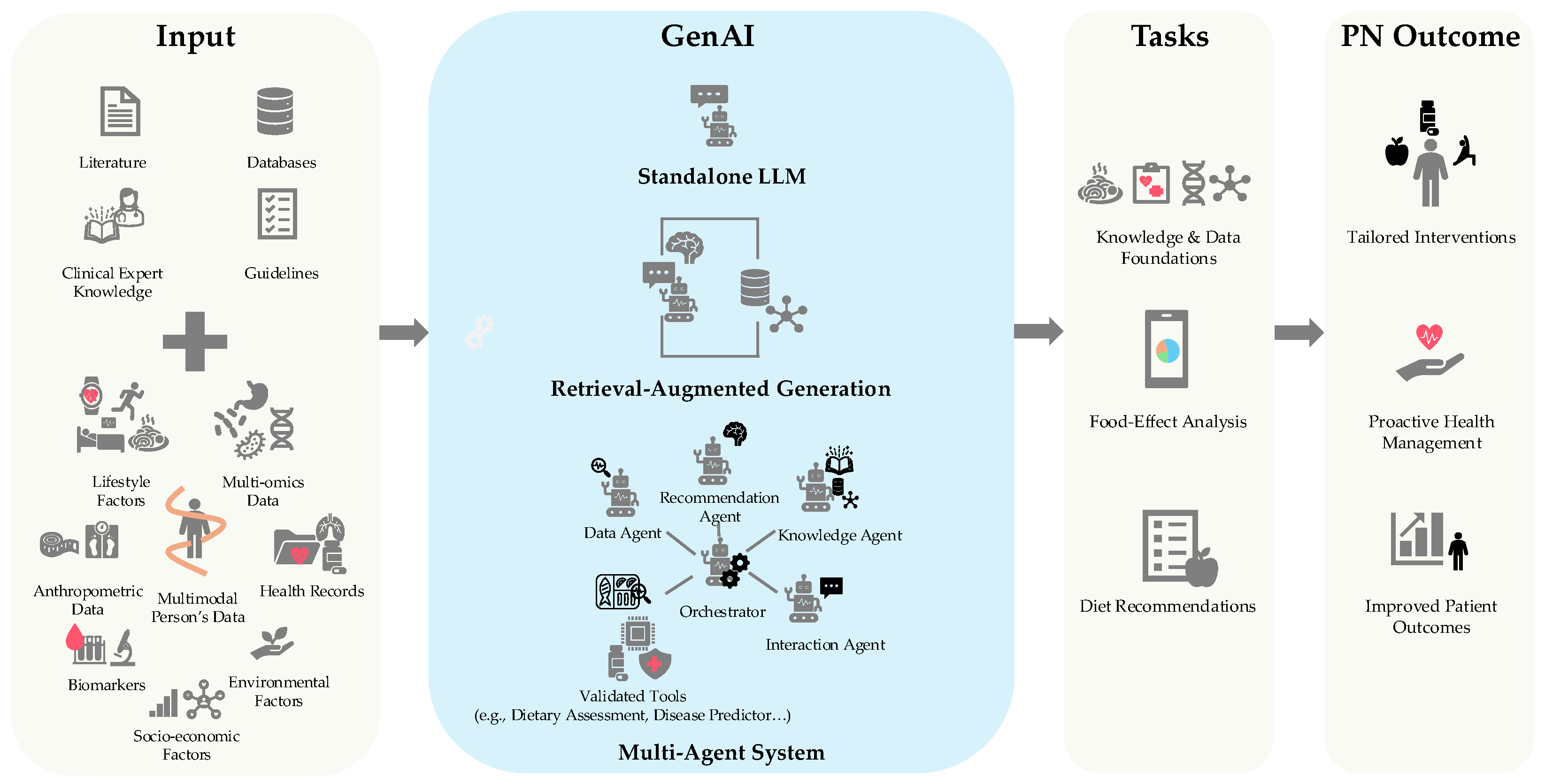 APA StyleAbdur Rahman, L., Dedousis, V., Papathanail, I., Poursoleymani, R., Kafyra, M., Kalafati, I. P., & Mougiakakou, S. G. (2026). Generative AI in Precision Nutrition: A Review of Current Developments and Future Directions. Nutrients, 18(6), 938. https://doi.org/10.3390/nu18060938