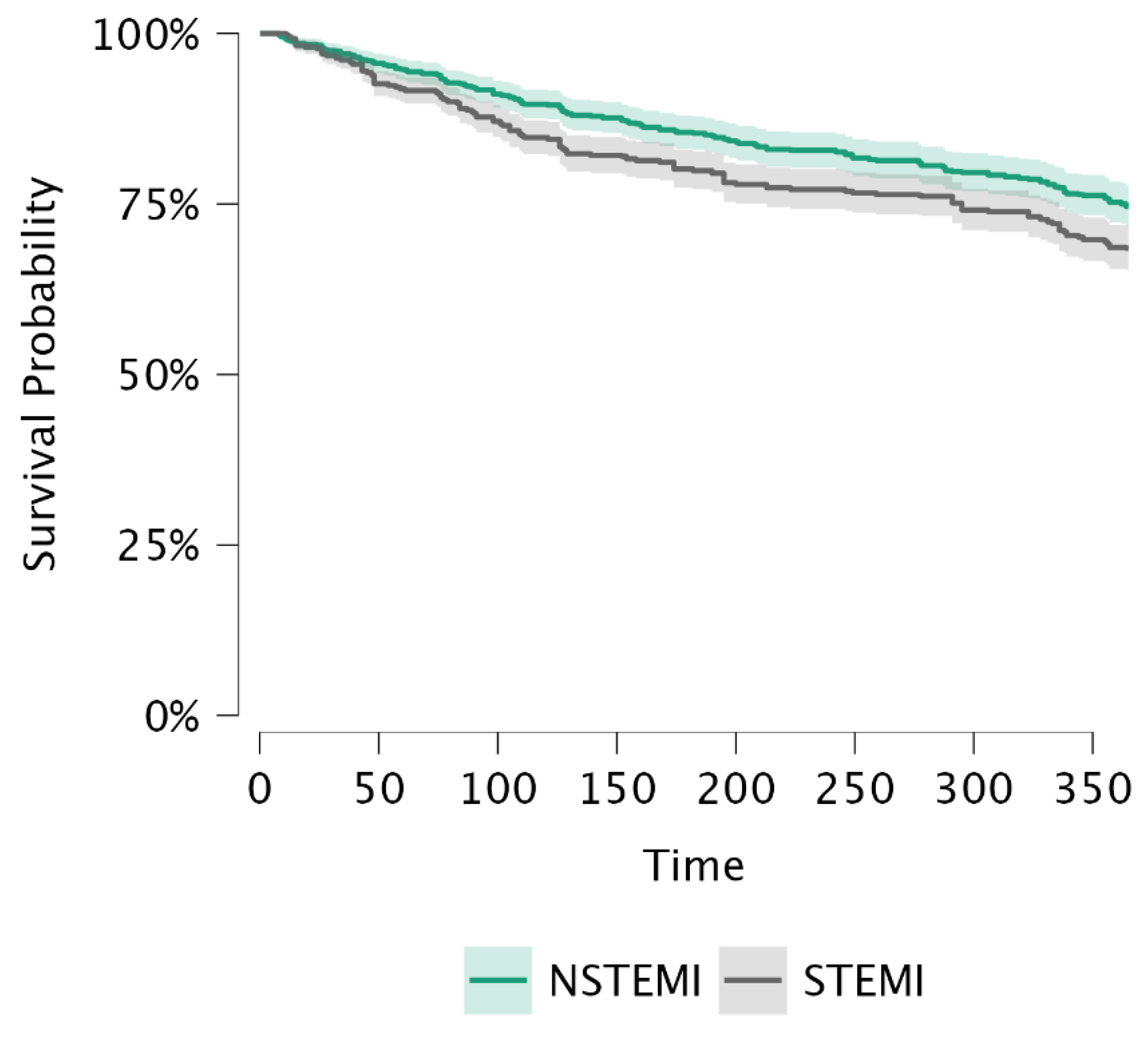 - Han, X.; Bai, L.; Jeong, M.H.; Ahn, J.H.; Hyun, D.Y.; Cho, K.H.; Kim, M.C.; Sim, D.S.; Hong, Y.J.; Kim, J.H.; et al. Higher Long-Term Mortality in Patients with Non-ST-Elevation Myocardial Infarction than ST-Elevation Myocardial Infarction after Discharge. Yonsei Med. J. 2021, 62, 400–408. [Google Scholar] [CrossRef]