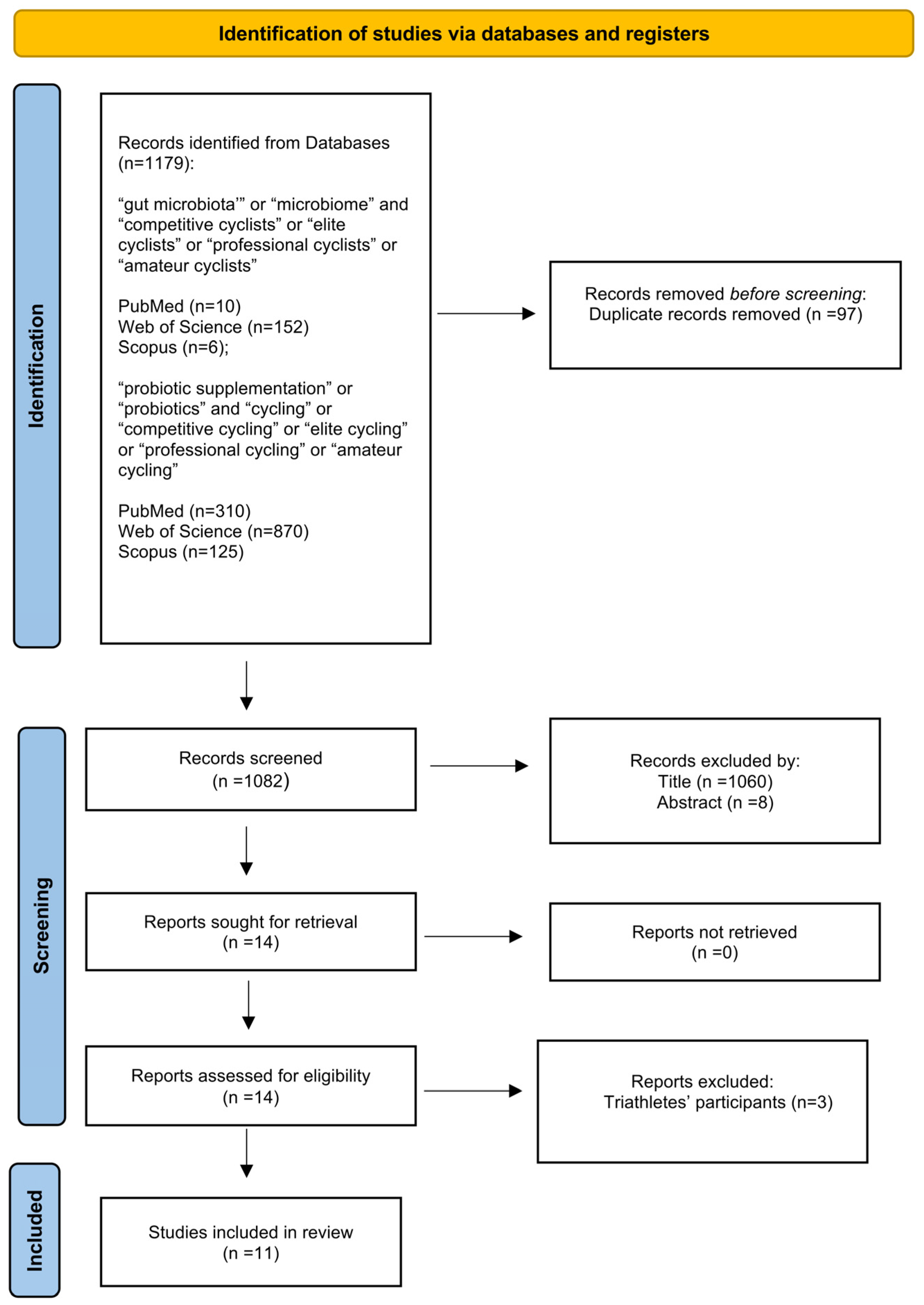 Chicago/Turabian StyleBelmonte, Giacomo, Marco Gervasi, Deborah Agostini, Sabrina Donati Zeppa, Eugenio Formiglio, Irene Rosa Di Mitri, Eneko Fernández-Peña, Alessia Bartolacci, Vilberto Stocchi, Antonio Paoli, and et al. 2026. "Gut Microbiota Profile and the Impact of Probiotic Supplementation in Competitive Cyclists: A Scoping Review" Nutrients 18, no. 6: 991. https://doi.org/10.3390/nu18060991