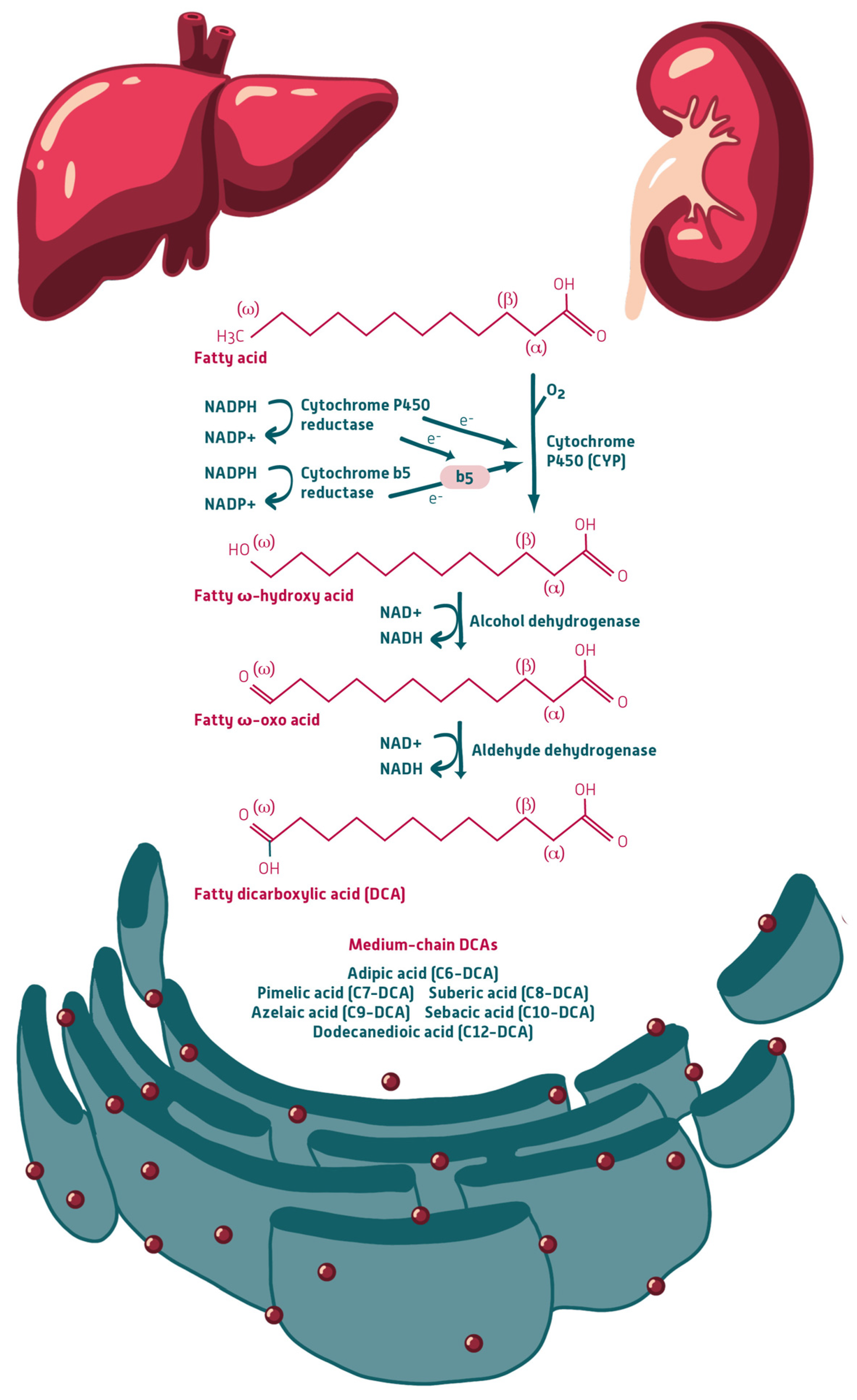 - Ranea-Robles, P.; Houten, S.M. The biochemistry and physiology of long-chain dicarboxylic acid metabolism. Biochem. J. 2023, 480, 607–627. [Google Scholar] [CrossRef]