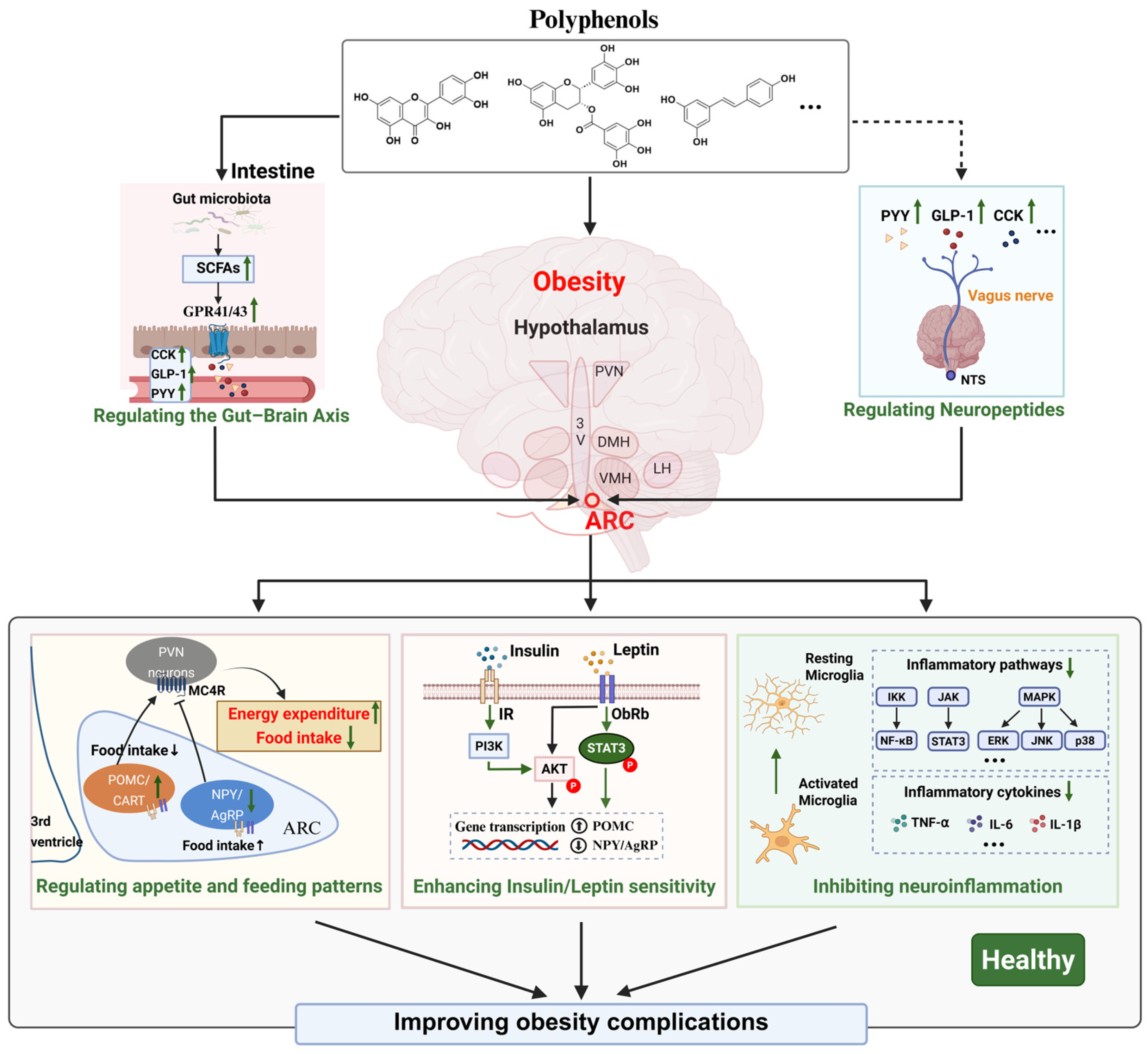 3. Dietary Polyphenols Regulate Nervous System to Ameliorate Obesity Complications