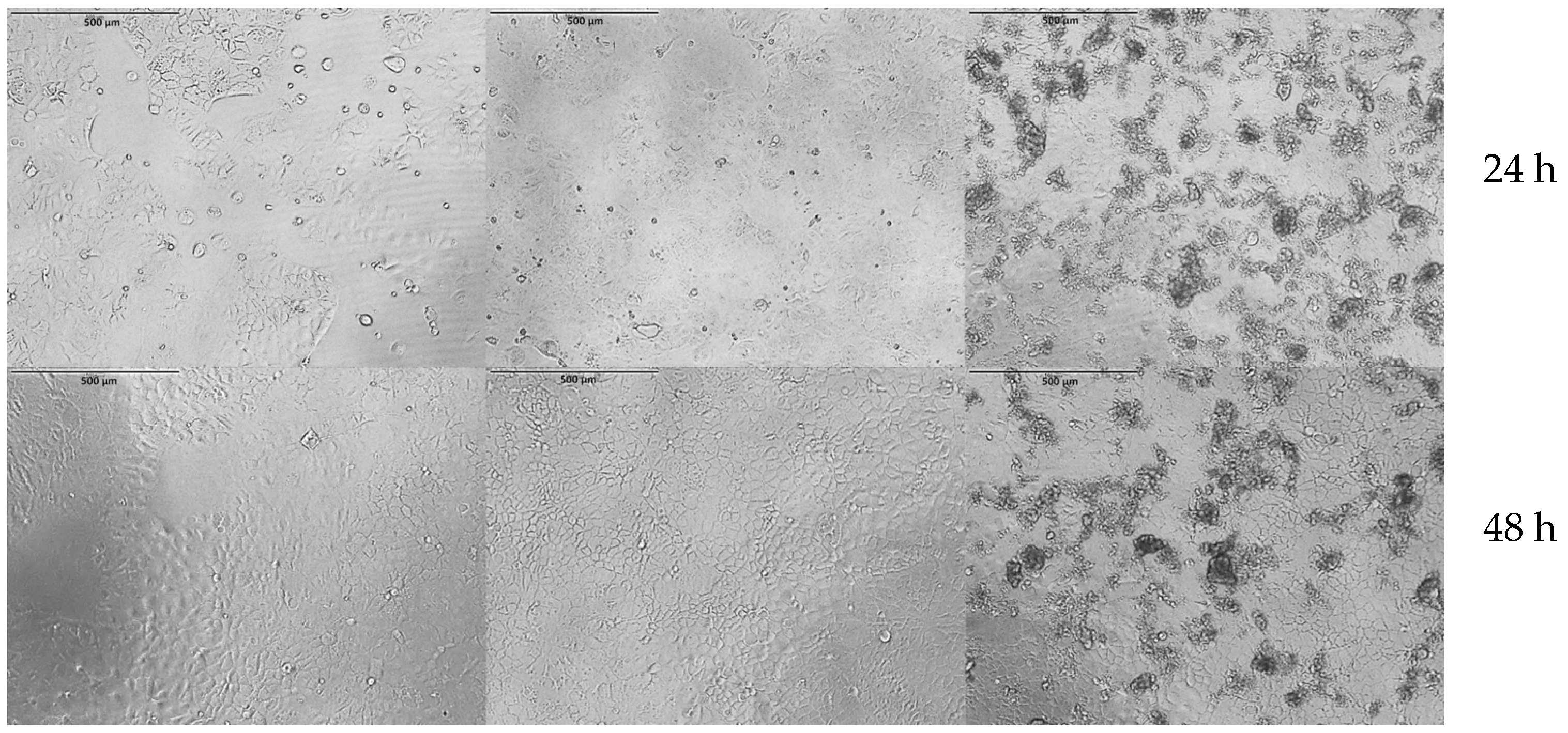 - Cai, L.; Qin, X.; Xu, Z.; Song, Y.; Jiang, H.; Wu, Y.; Ruan, H.; Chen, J. Comparison of Cytotoxicity Evaluation of Anticancer Drugs between Real-Time Cell Analysis and CCK-8 Method. ACS Omega 2019, 4, 12036–12042. [Google Scholar] [CrossRef]