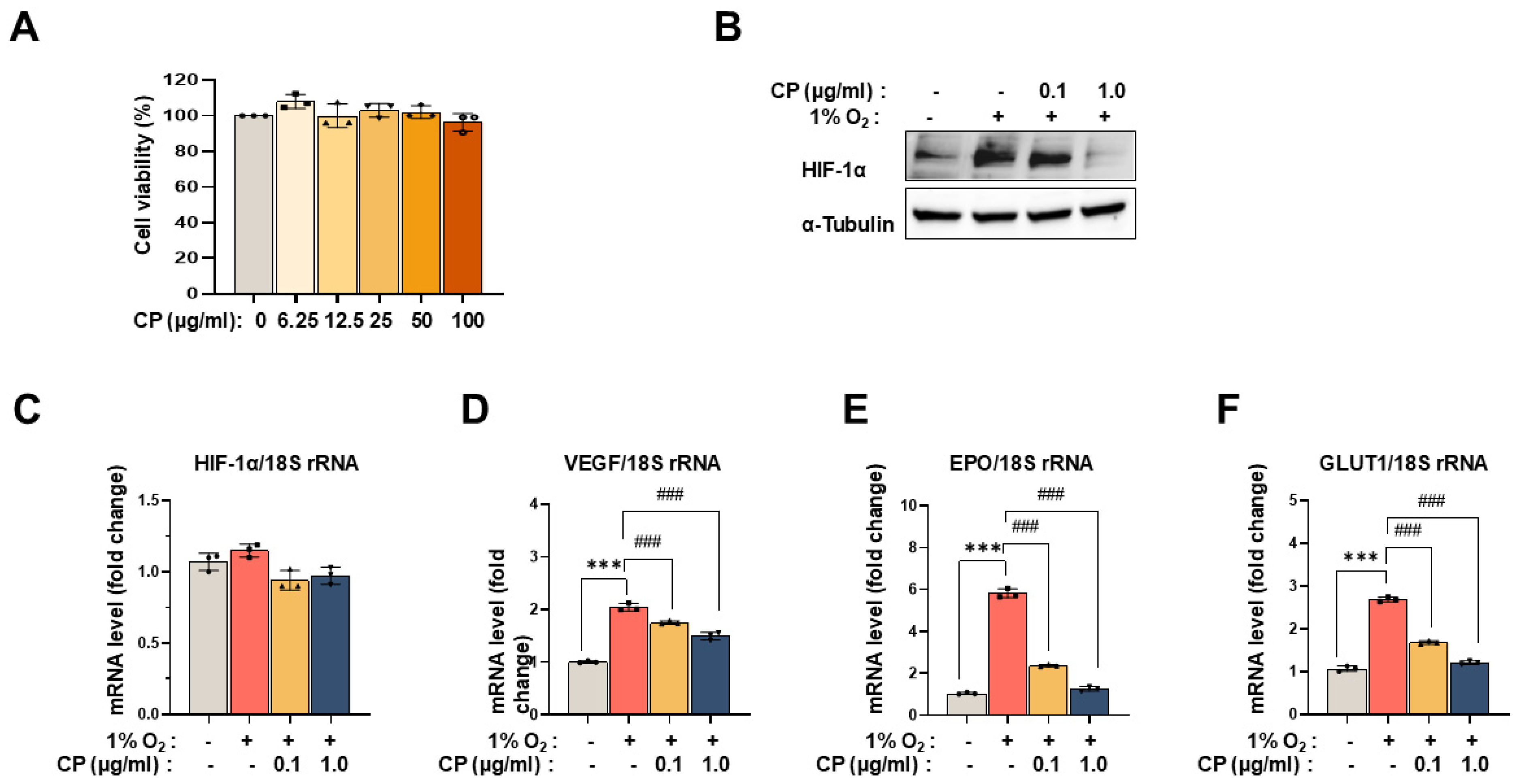 3.2. Cocoa Powder Attenuated Hypoxia-Induced Stabilization of HIF-1α and Downstream Gene Expression Without Cytotoxicity