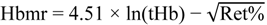 where ln(tHb) is natural log of tHb mass in g, Ret% is percent reticulocytes.