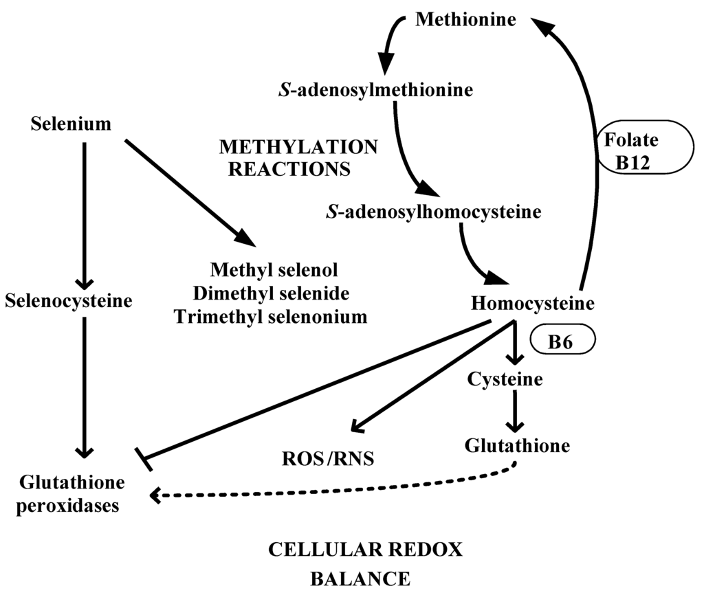 Selenium and redox-methylation balance. Selenium plays a pivotal role in balancing the flux between potential redox and methylation states.