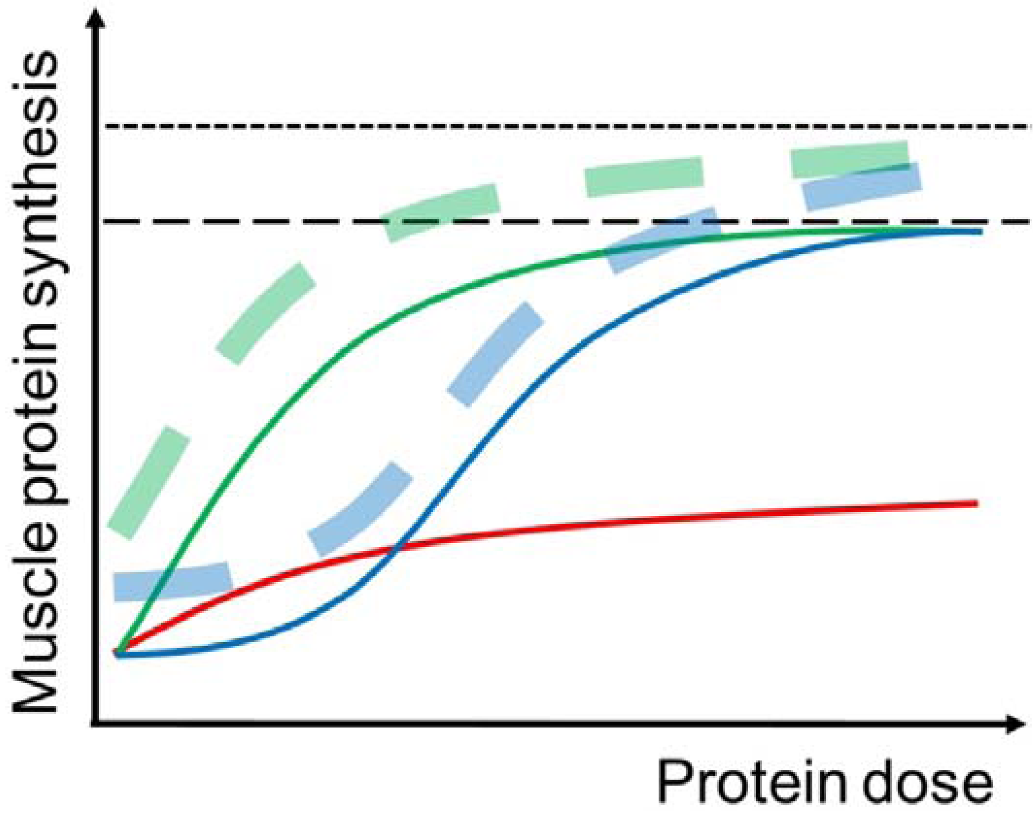 - Deutz, N.E.P.; Wolfe, R.R. Is there a maximal anabolic response to protein intake with a meal? Clin. Nutr. 2010. [Google Scholar] [CrossRef]