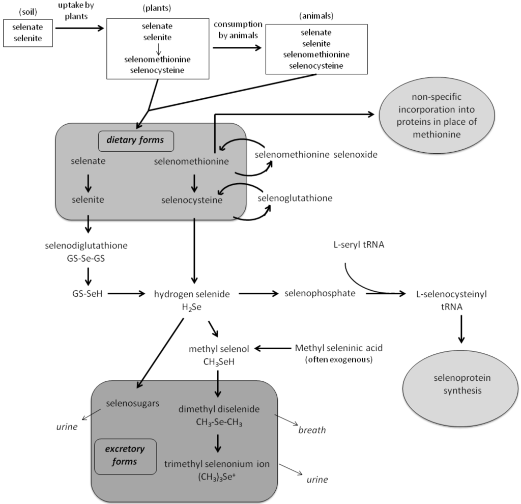 - Dumont, E.; Vanhaecke, F.; Cornelis, R. Selenium speciation from food source to metabolites: A critical review. Anal. Bioanal. Chem. 2006, 385, 1304–1323. [Google Scholar] [CrossRef]