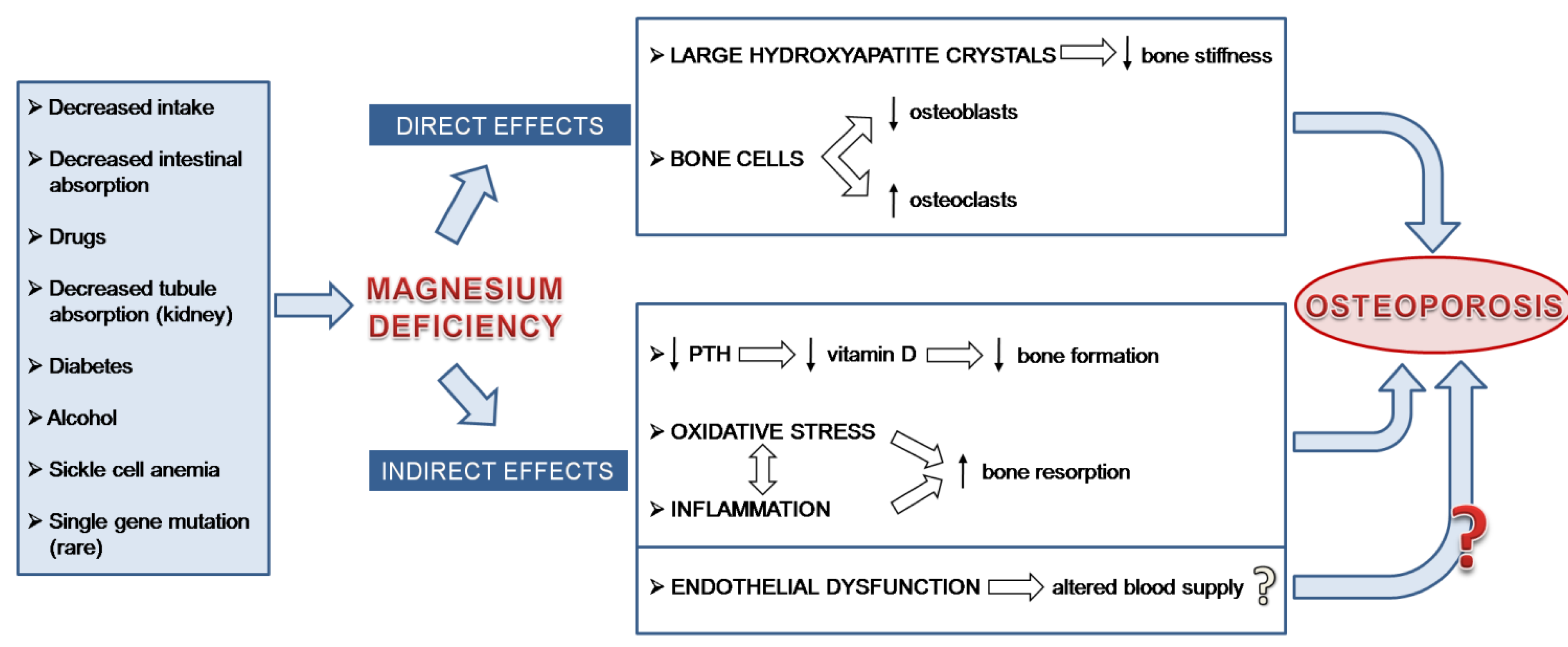The mechanisms explaining the effects of Mg deficiency on the bone in humans are similar to what has been described in experimental models: