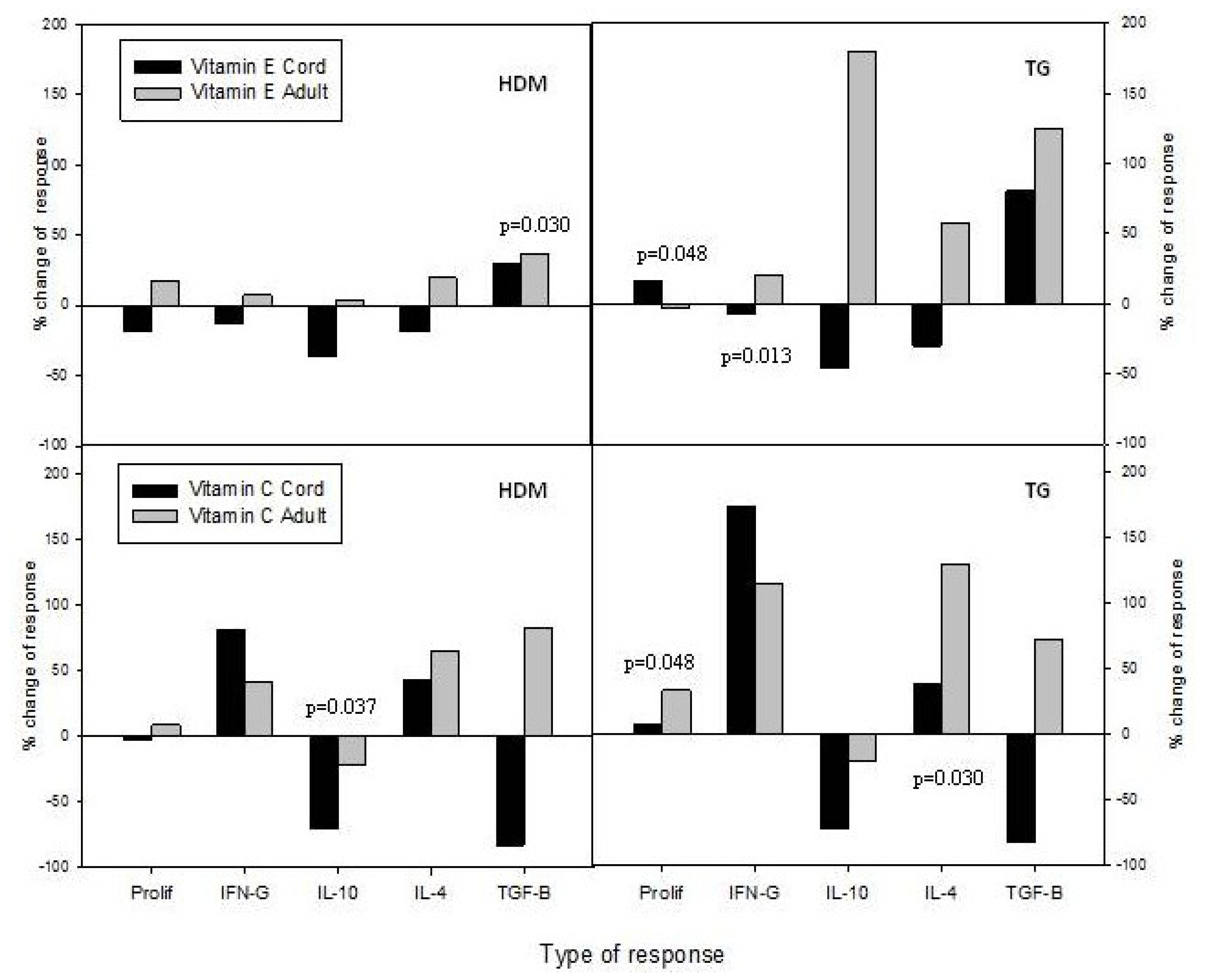 Chicago/Turabian StyleWassall, Heather J. H., Graham Devereux, Anthony Seaton, and Robert N. Barker. 2013. "Complex Effects of Vitamin E and Vitamin C Supplementation on in Vitro Neonatal Mononuclear Cell Responses to Allergens" Nutrients 5, no. 9: 3337-3351. https://doi.org/10.3390/nu5093337