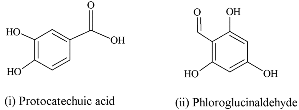 Degradation products of anthocyanins. (i) Protocatechuic acid; (ii) Phloroglucinaldehyde.
