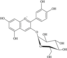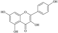 | Flavonols (i) Kaempferol, (ii) Myricetin, (iii) Quercetin-3-O-glucoside an example of a glucoside, food values are for quercetin | Source [] | (i) | (ii) | (iii) | ||