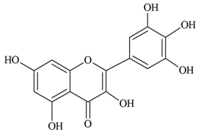 Mean quercetin, kaempferol and myricetin daily intake of Australian adults was 12.53 mg, 5.6 mg and 2.4 mg, respectively []. Black and green tea contributed most to the intake of the three compounds. Apples were also an important contributor for quercetin intake but not for other compounds. Quercetin and kaempferol contributed more to flavonol intake of Chinese adults [] and Japanese middle-aged women []. In Spanish adults, quercetin accounted for 79.6% of flavonol intake and onions were the main dietary source contributing to 22.6% of the intake followed by lettuce, red wine and apples [].