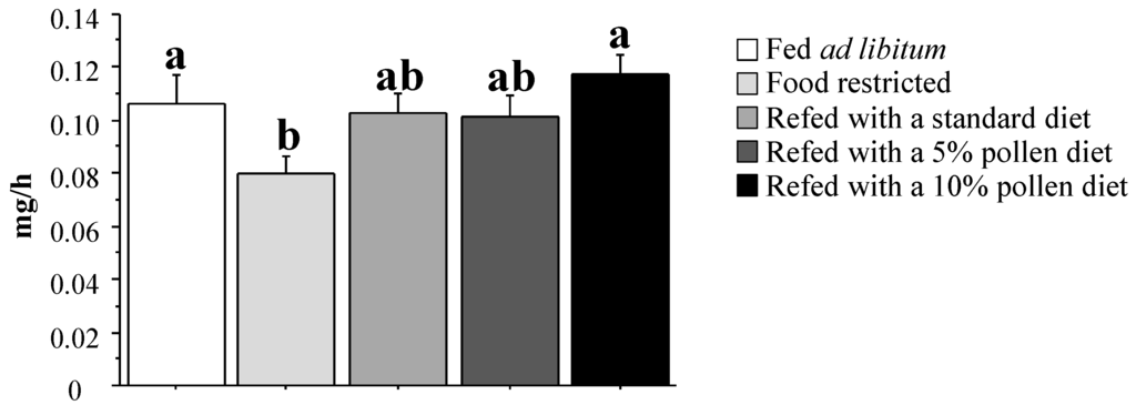 | Controls | Restricted | Refed Standard | Refed 5% Pollen | Refed 10% Pollen | |