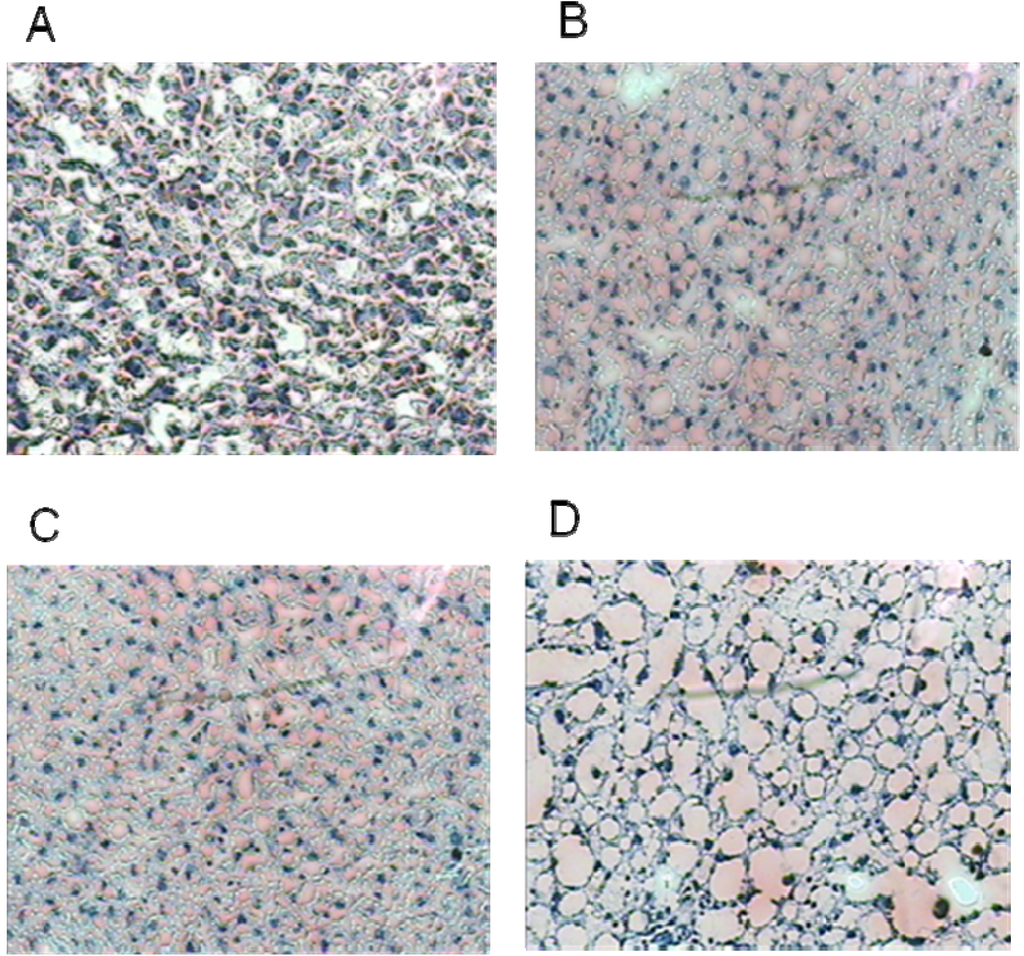 | Hepatic ballooning | 0.0 ± 0.0 a | 0.5 ± 0.2 a | 0.3 ± 0.2 a | 2.0 ± 0.0 b | 0.000 |