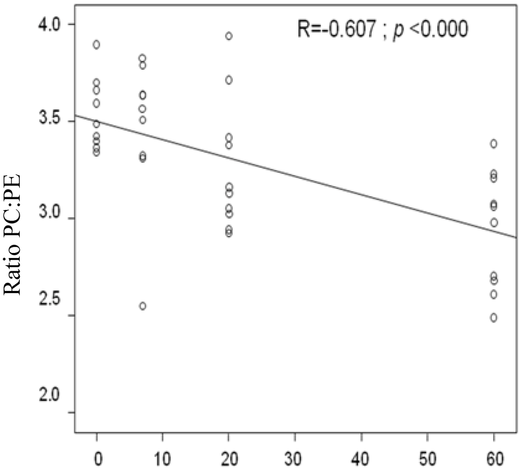 | Ratio PC/PE (mol/mol) | 3.5 ± 0.1 b | 3.5 ± 0.1 b | 3.3 ± 0.1 a,b | 2.9 ± 0.1 a | 0.001 |