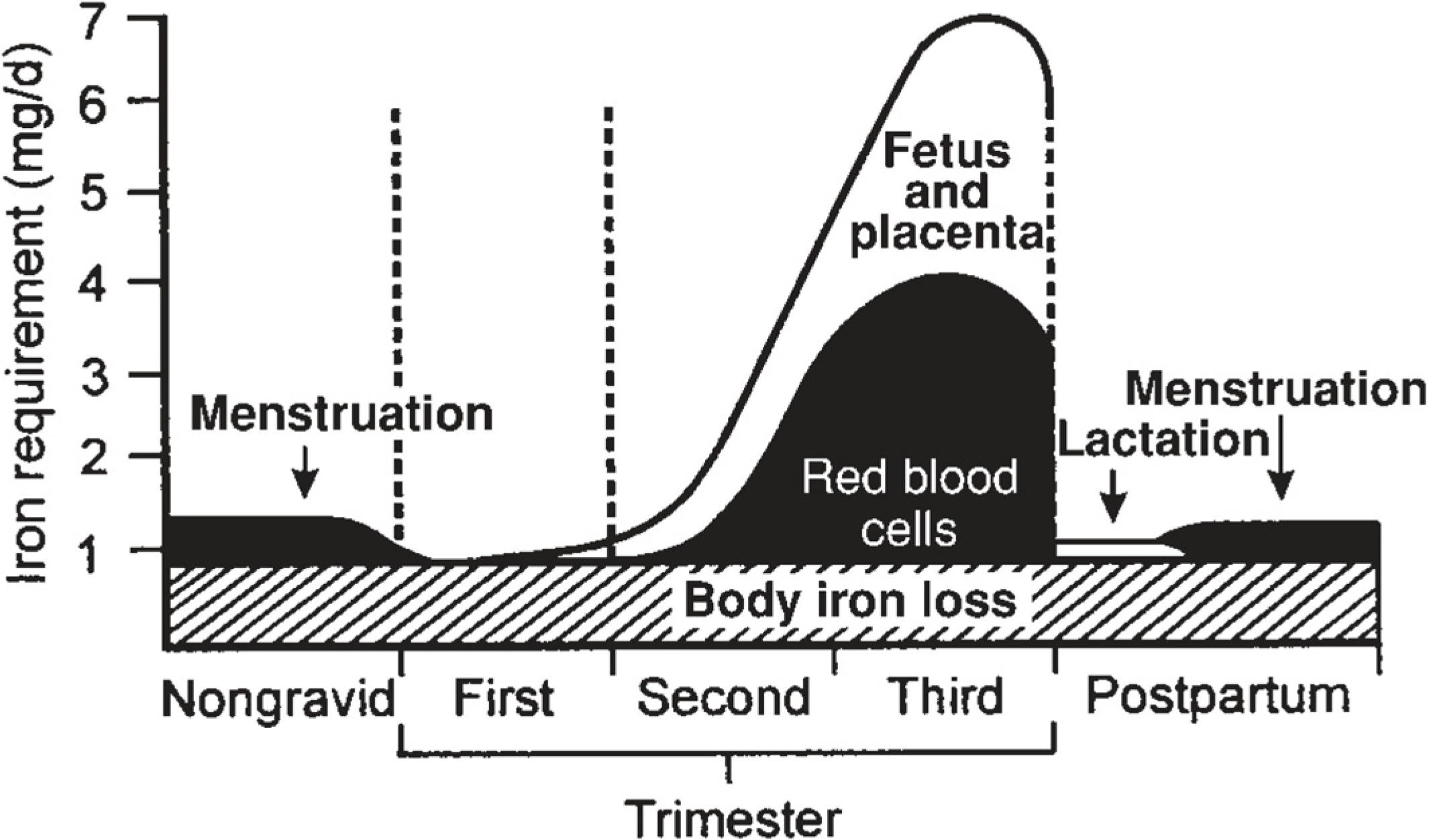 Estimated daily iron requirements during pregnancy in a 55-kg woman [5]. (with permission to publish photo from The American Journal of Clinical Nutrition).