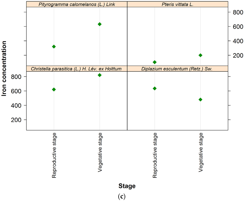 Ancuceanu, R.; Dinu, M.; Hovaneţ, M.V.; Anghel, A.I.; Popescu, C.V.; Negreş, S. A Survey of Plant Iron Content—A Semi-Systematic Review. Nutrients 2015, 7, 10320-10351. https://doi.org/10.3390/nu7125535