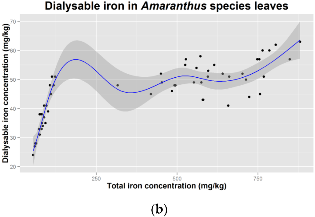 - Rangarajan, A.; Chenoweth, W.A.; Kelly, J.F.; Agee, K.M. Iron bioavailability fromAmaranthus species: 2—Evaluation using haemoglobin repletion in anaemic rats. J. Sci. Food Agric. 1998, 78, 274–280. [Google Scholar] [CrossRef]