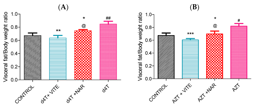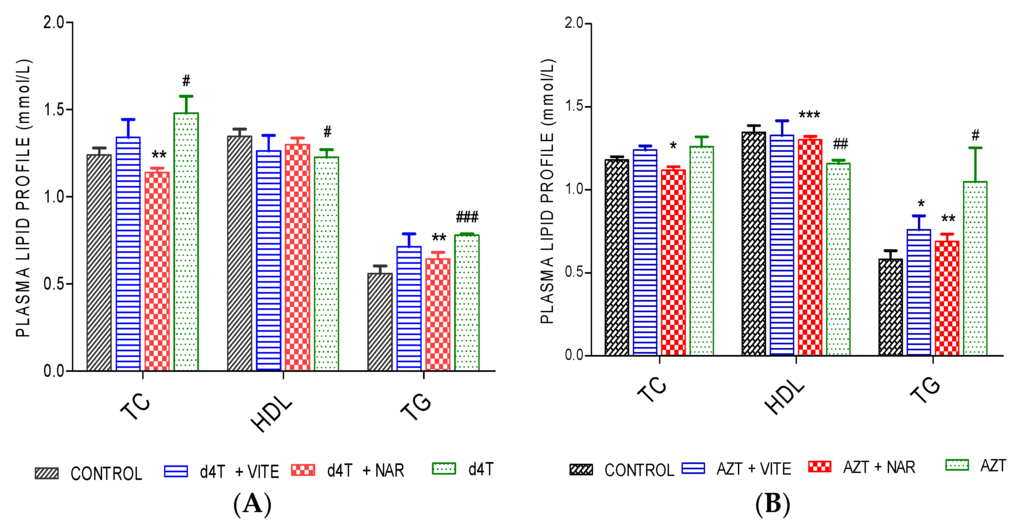 3.1. Effects of Naringin on Metabolic Complications of NRTIs