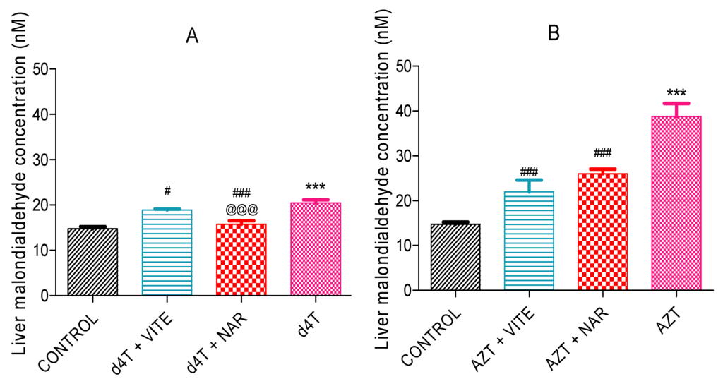 3.2. Effects of Naringin on NRTI-induced Oxidative Stress