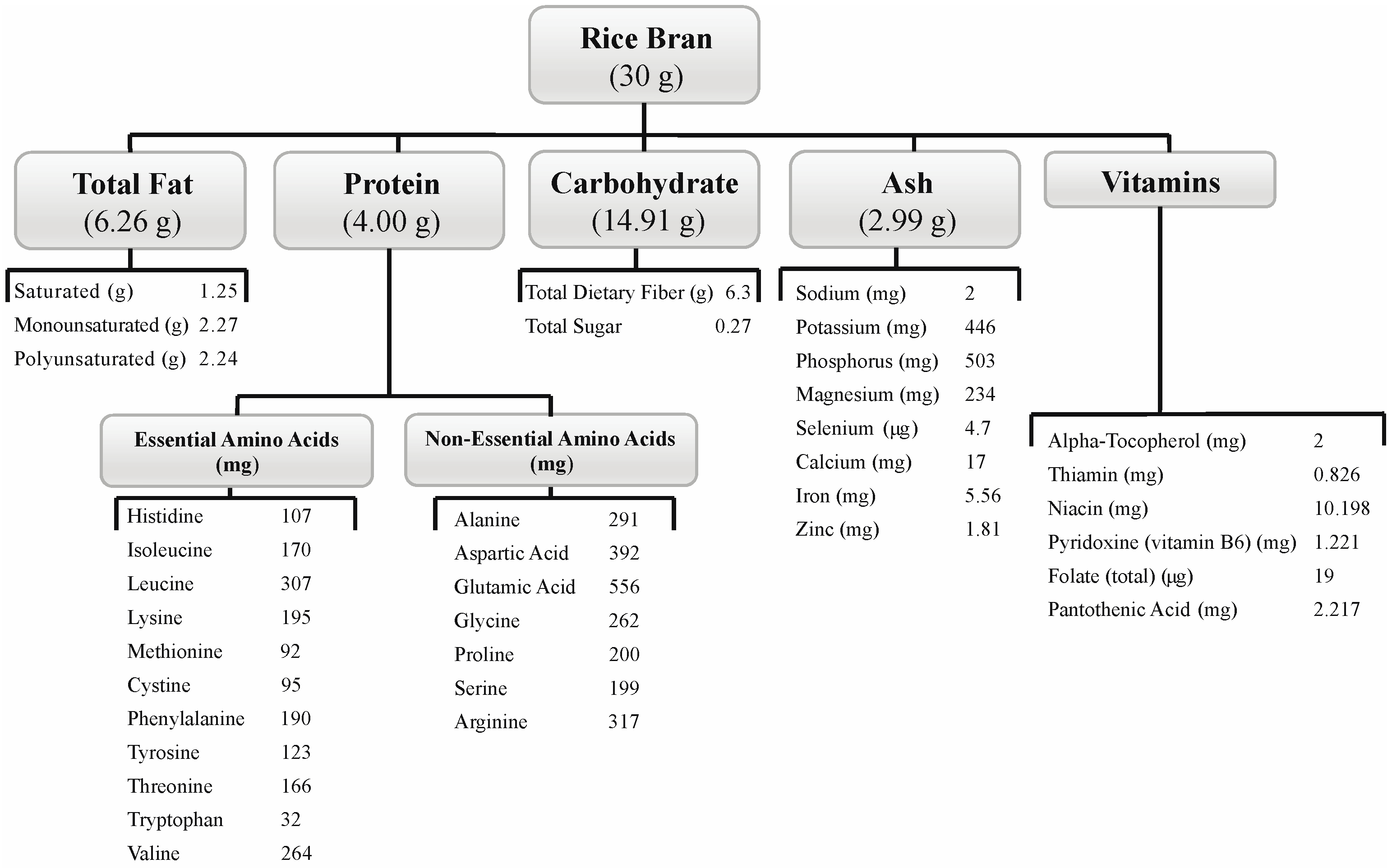 - Prasad, M.N. Health benefits of rice bran—A review. J. Nutr. Food Sci. 2011, 1, 108. [Google Scholar] [CrossRef]