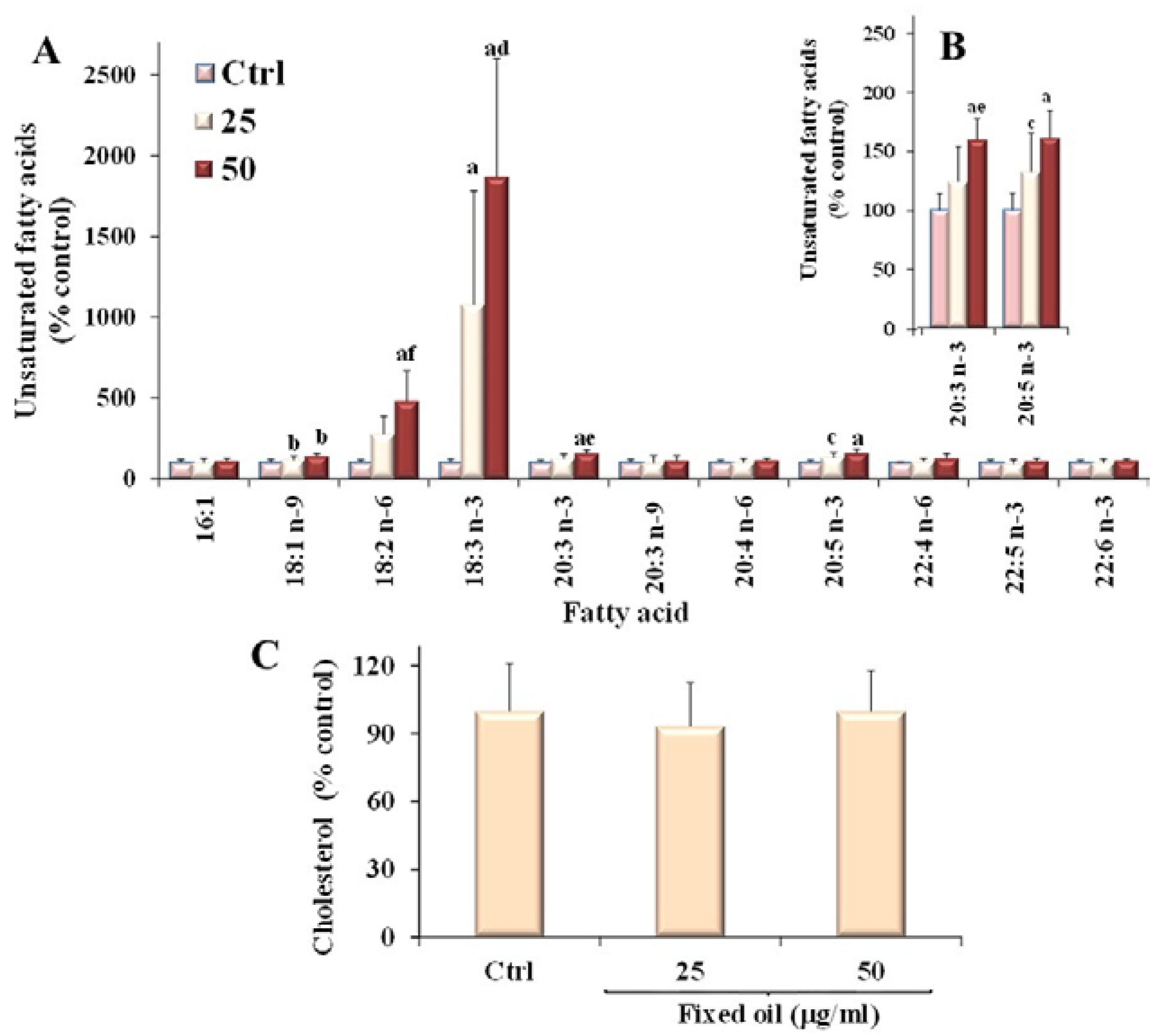 3.1. Composition of C. Coccineum Fixed Oil