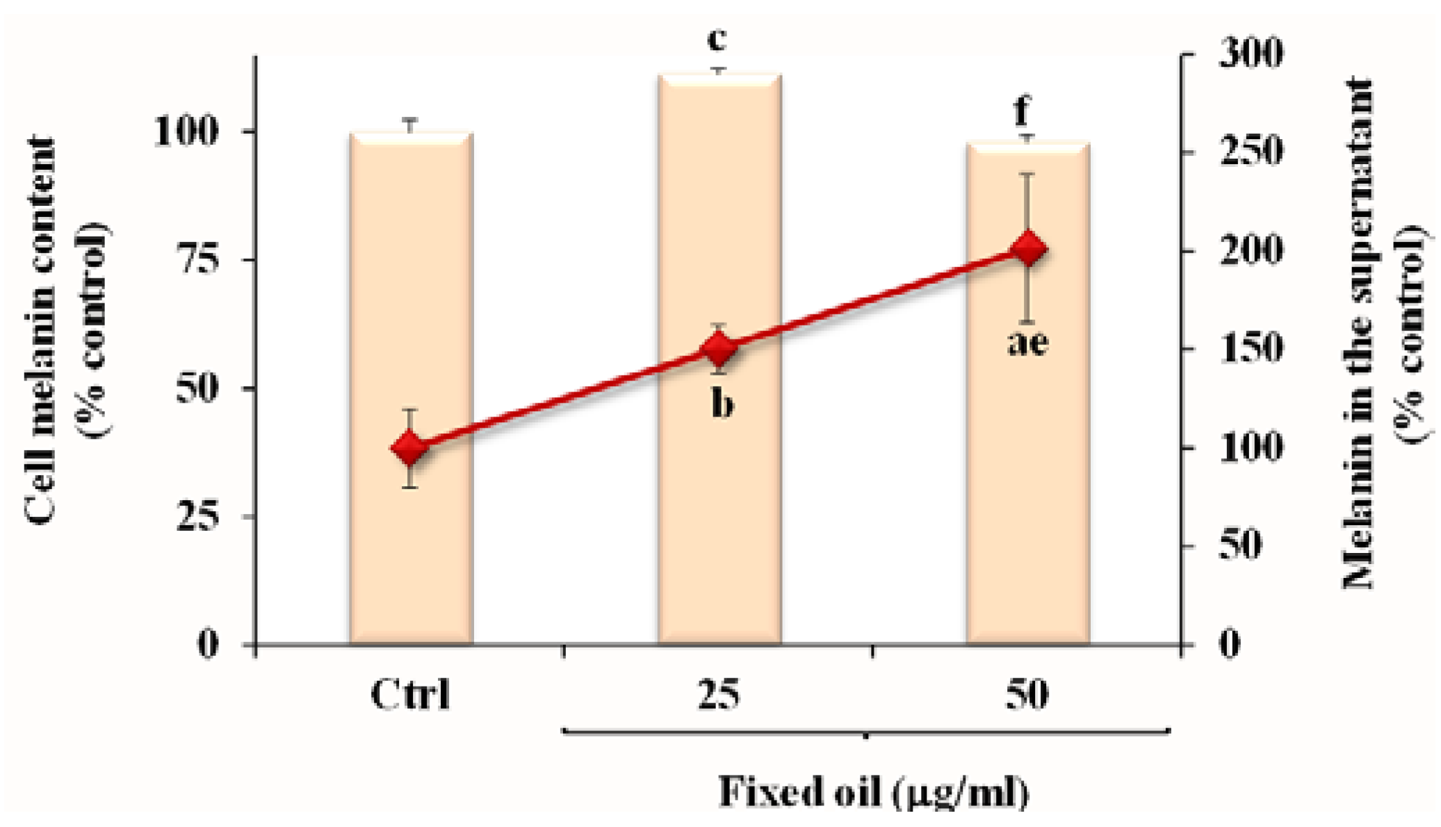 2.9. Effect of Oil on Melanin Production in B16F10 Melanoma Cells