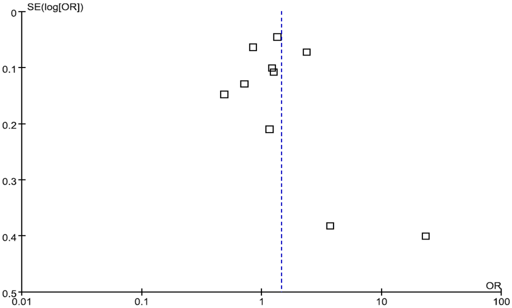 - Higgins, J.P.; Thompson, S.G.; Deeks, J.J.; Altman, D.G. Measuring inconsistency in meta-analyses. BMJ 2003, 327, 557–560. [Google Scholar] [CrossRef] [PubMed]