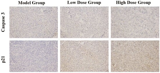 Caspase 3 and p21 immunochemical staining of tumor xenografts sections (200× magnification) (n = 3).