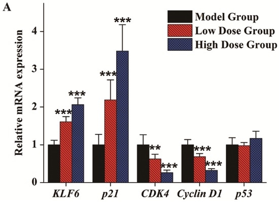 C3G standards were purchased from Sigma-Aldrich Co. LLC (Shanghai, China). RIPA (Radio Immunoprecipitation Assay) lysis buffer was purchased from the Beyotime Institute of Biotechnology (Hangzhou, China). Anti-KLF6, anti-caspase3, anti-p21, anti-p53, anti-Cyclin D1, anti-CDK4 antibodies were obtained from Proteintech (Chicago, IL, USA). All the other reagents were of analytical grade and purchased from Sinopharm Chemical Reagent Co., Ltd. (Shanghai, China). Double-distilled water (ddH2O) was used in all experiments. All samples for HPLC (High Performance Liquid Chromatography) analyses were filtered through a 0.22 μm membrane before injection.