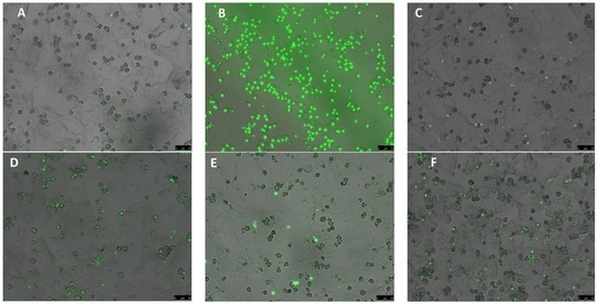 To confirm the results obtained by determining the LDH release, we also used Sytox green as a fluorescent dye for necrotic cells. APAP (20 mmol/L) induced significant cell necrosis in primary cultures of rat hepatocytes (Figure 5B) in comparison to the Control (Figure 5A), which was almost completely abolished by the Opuntia extracts (Figure 5F,G). NAC (Figure 5H) showed a similar protective effect as the Opuntia extracts. These results confirm the data obtained with the LDH determinations.