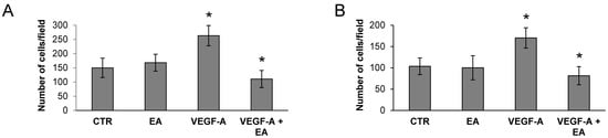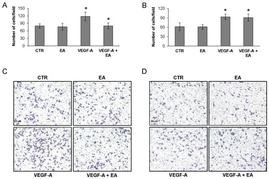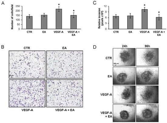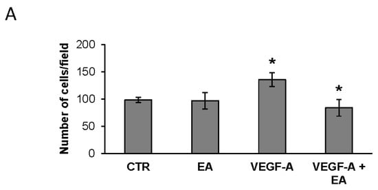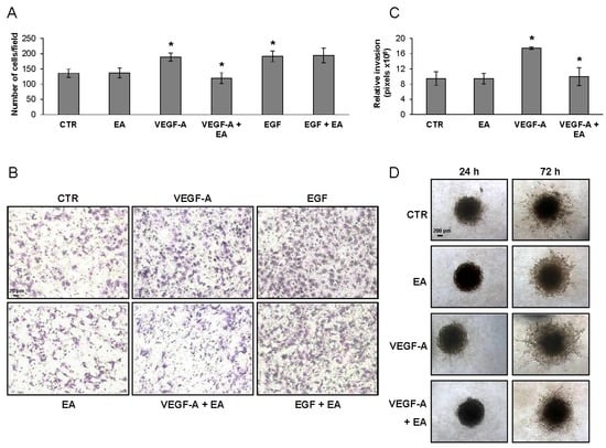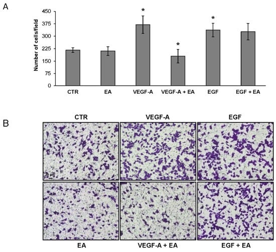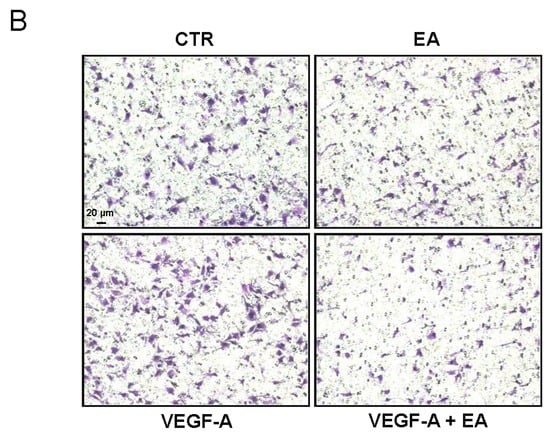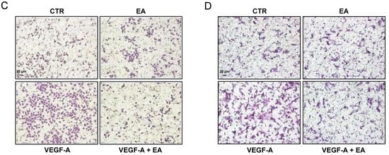 3.4. EA Inhibits Extracellular Matrix Invasion and Migration of Human Bladder Cancer Cells in Response to VEGF-A