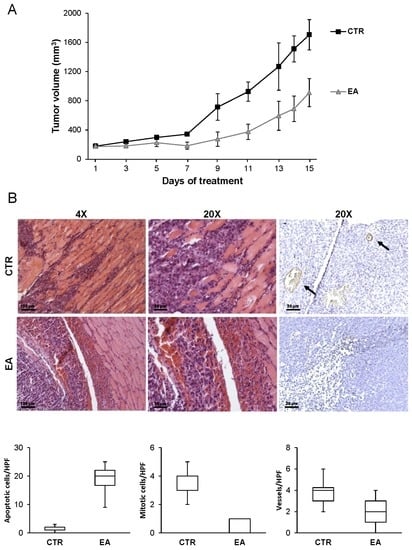 3.6. EA Inhibits In Vivo Bladder Cancer Growth