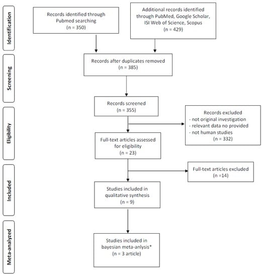 The literature search retrieved 779 papers. After screening, 385 papers were selected for full-text revision. After applying our inclusion and exclusion criteria, 376 studies were excluded and then nine clinical trials were selected for the present systematic review and meta-analysis.