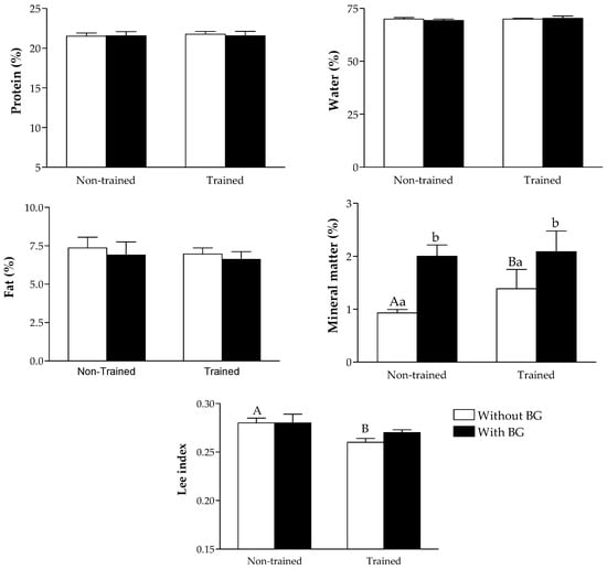 2.6. Lee Index Assessment and Chemical Composition of the Body