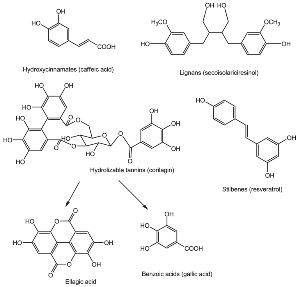 Nonflavonoid-type phenolics that are metabolized by the gut microbiota [42].