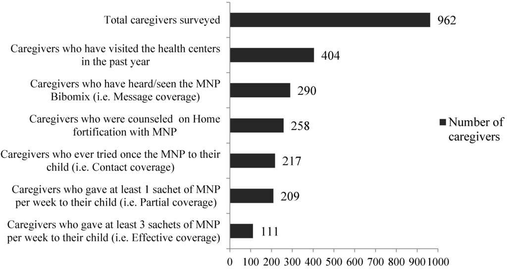 The results of the caregivers visit and counseling at the health centers, as well as the MNP coverage, are summarized in the Figure 4.