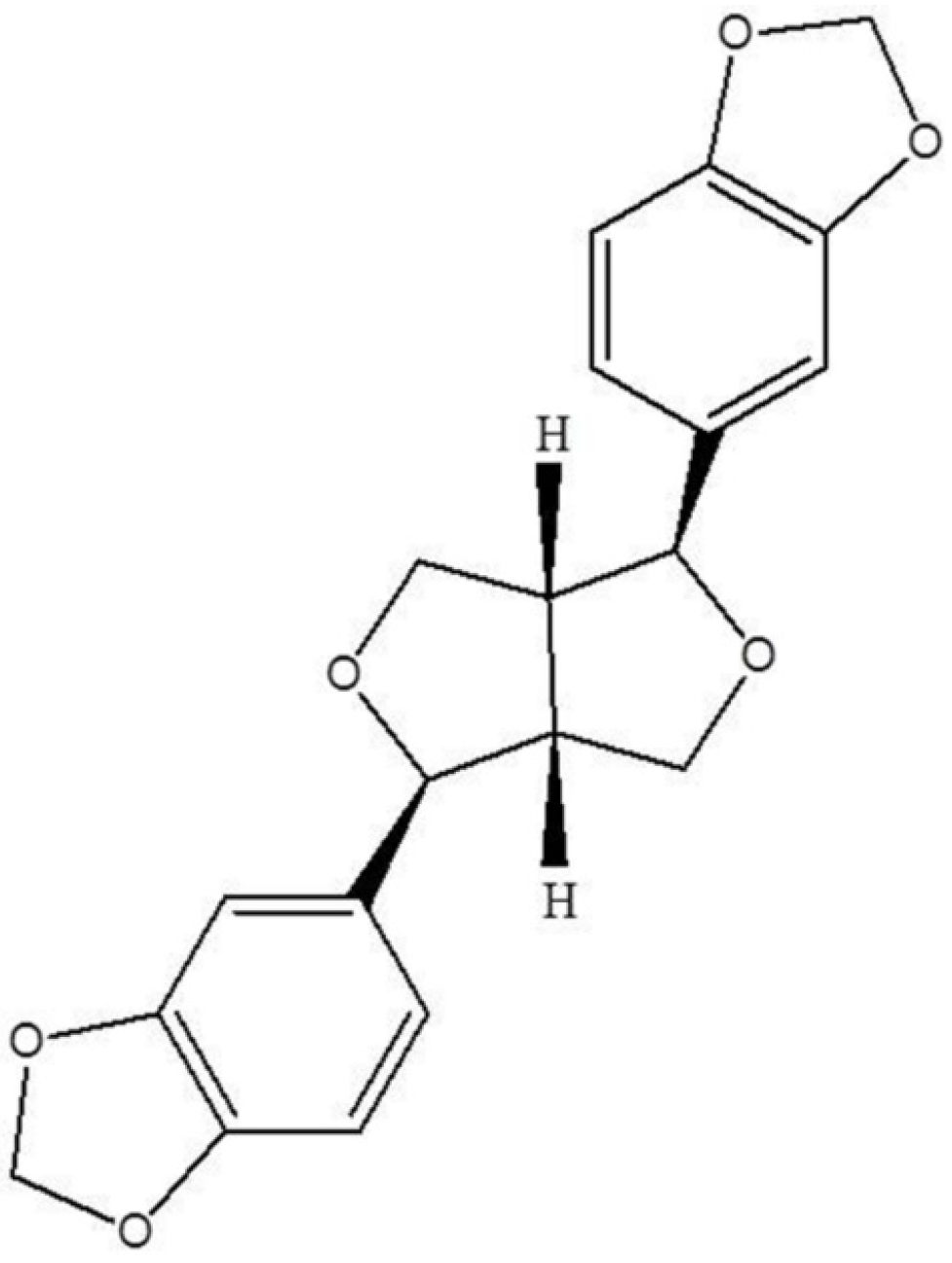 Sesamin (purity by HPLC > 98.0%) was provided by Shaanxi HuikePhytompharm, Xi’an, China. The structure of sesamin is shown in Figure 1. It was dissolved in plant oil in concentrations of 8, 16, and 32 mg/mL. The stock solutions were prepared once a week and stored at 4 °C. Before gavage, sesamin solutions were acclimated to room temperature, mixed well, and administered to animals in a volume of 5 mL. All chemicals used were purchased from Sigma-Aldrich (St. Louis, MO, USA), unless otherwise indicated. Mouse anti-α-smooth muscle actin (α-SMA) polyclonal antibody and rabbit anti-collagen-IV (Col-IV) polyclonal antibody were all purchased from Boster (Wuhan, China).